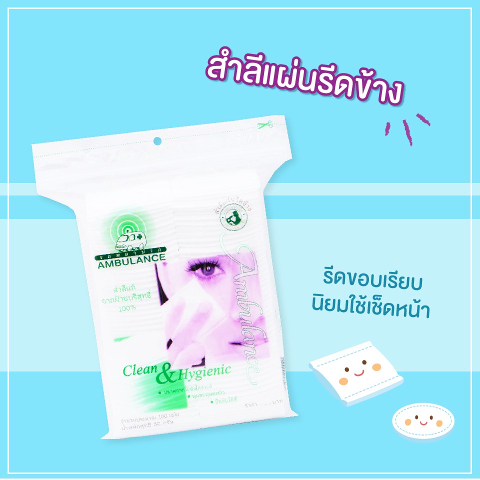 (สำลี) รถพยาบาล สำลี สำลีแผ่นรีดข้าง 100แผ่น