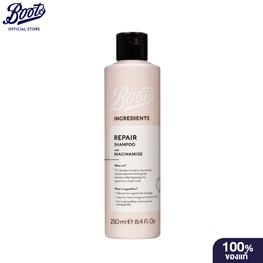 Boots Ingredients Repair Shampoo With Niacinamide 250 ml. บู๊ทส์ อินกรีเดียนส์ รีแพร์ แชมพู วิท ไนอาซินาไมด์ 250 มล.