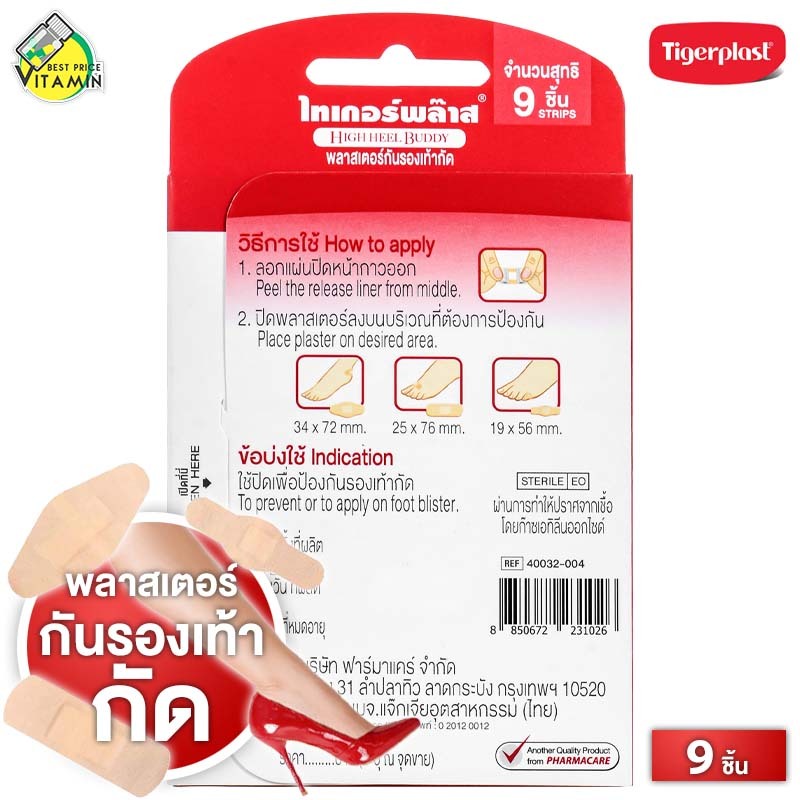 TigerPlast High Heel Buddy ไทเกอร์พล๊าส พลาสเตอร์ กันรองเท้ากัด [9 ชิ้น] รองเท้ากัด รองเท้ากัดส้น