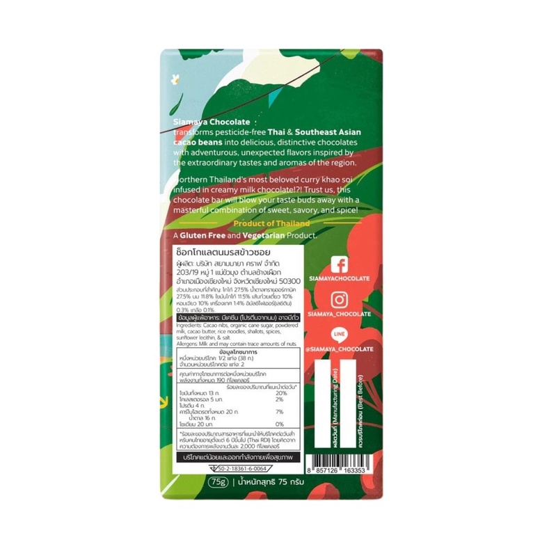 Siamaya Chocolate Khao Soi Northen Curry Milk Chocolate สยามมายา ช็อกโกแลตนม รสข้าวซอย (75 g)