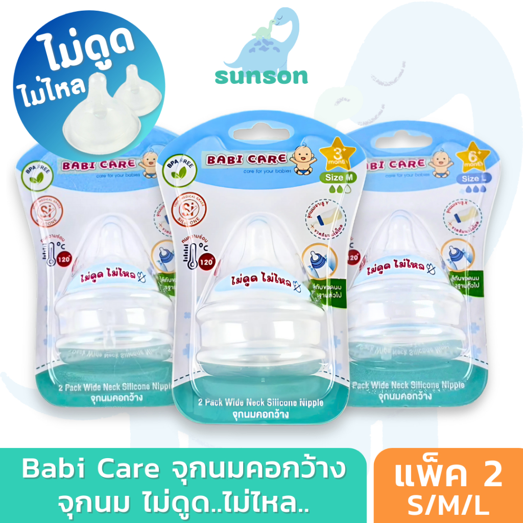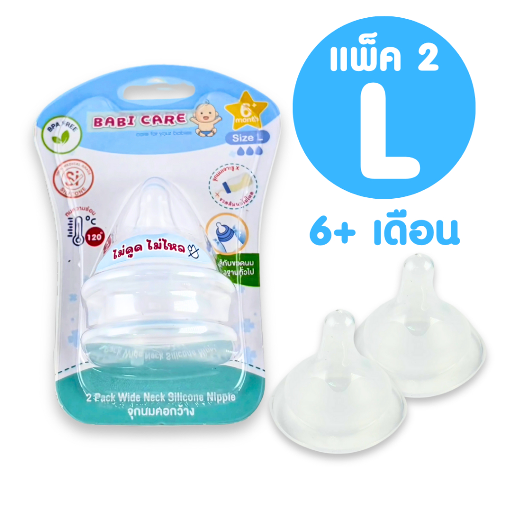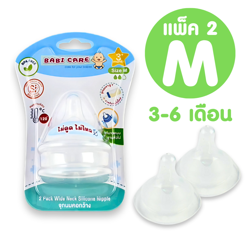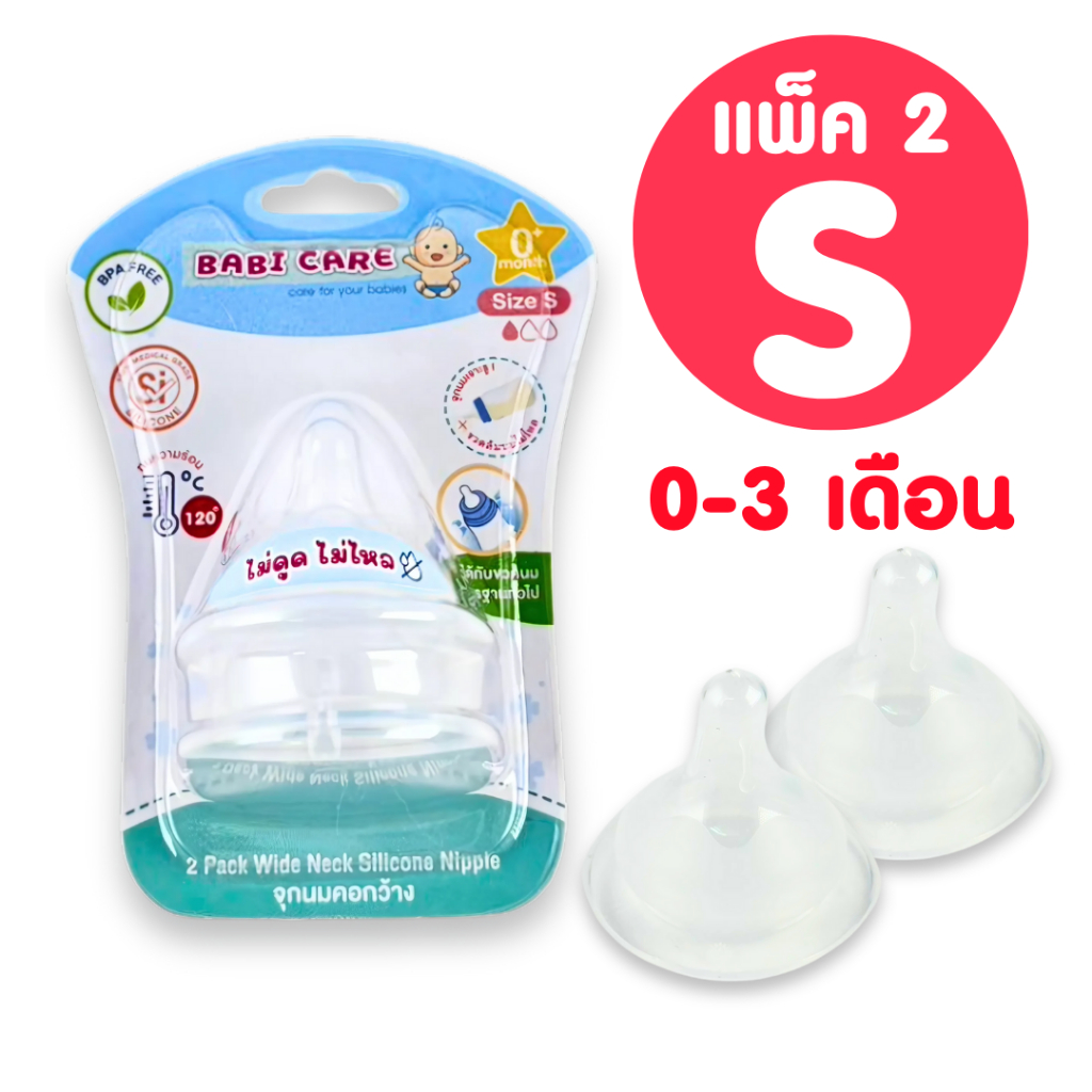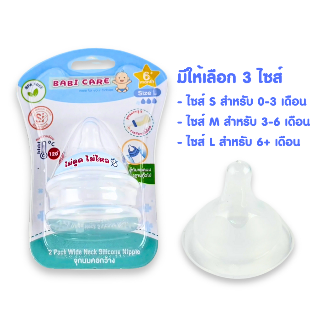 [จุกไม่ดูดไม่ไหล] Babi Care จุกนมคอกว้าง เบบี้แคร์ จุกไม่ดูดไม่ไล จุกนมซิลิโคน ใช้สำหรับ ขวดนมคอกว้าง (แพ็ค 2 จุก)