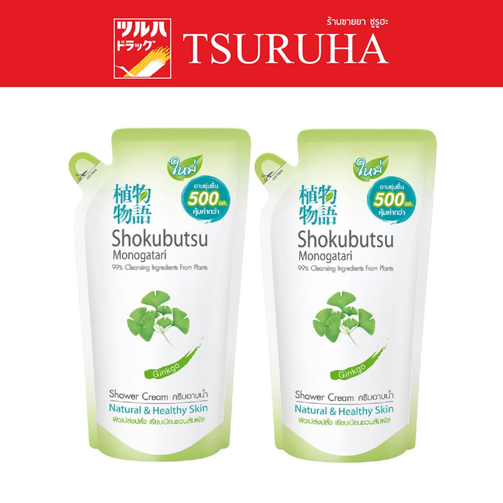 โชกุบุสซึ แพ็คคู่สุดคุ้ม สูตร จิงโกะ/Shokubutsu Monogatari Shower Cream Ginkgo Light Green Color Refill (500 Ml.x2)
