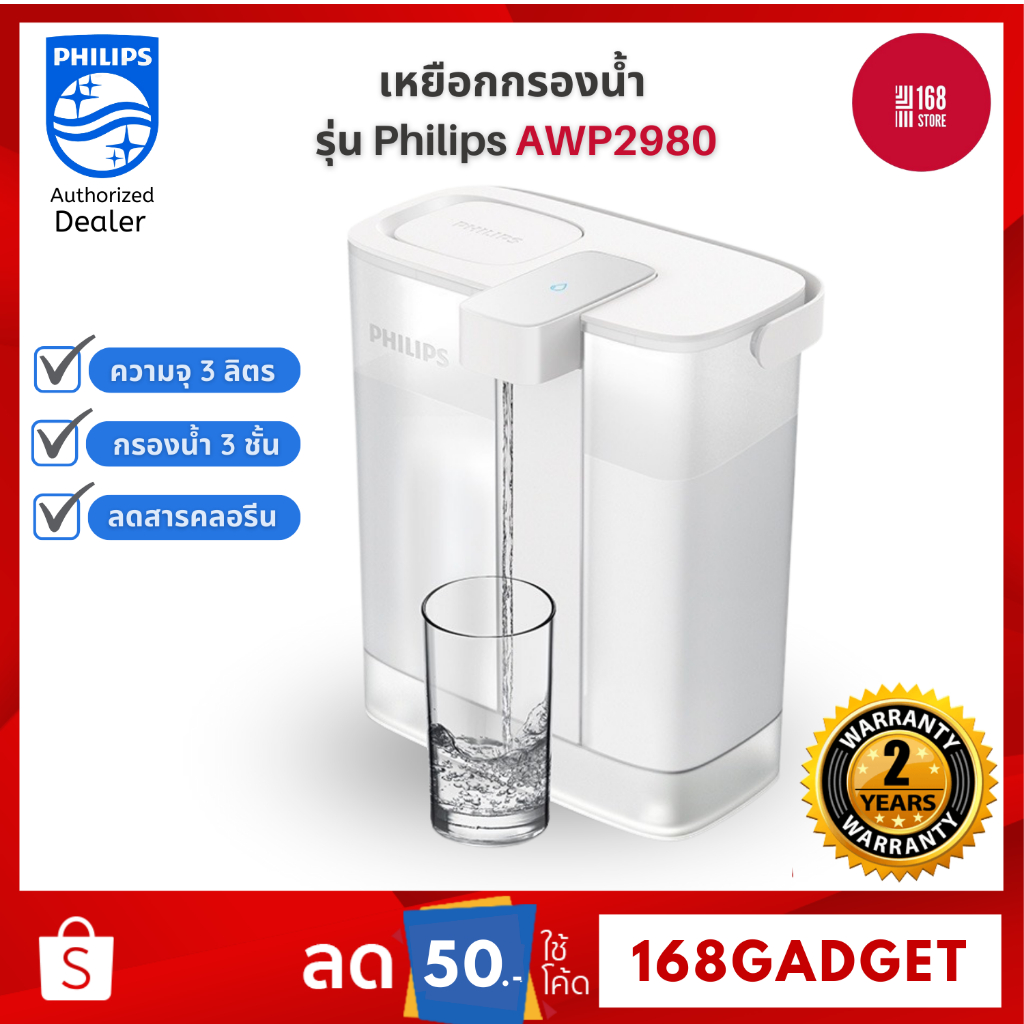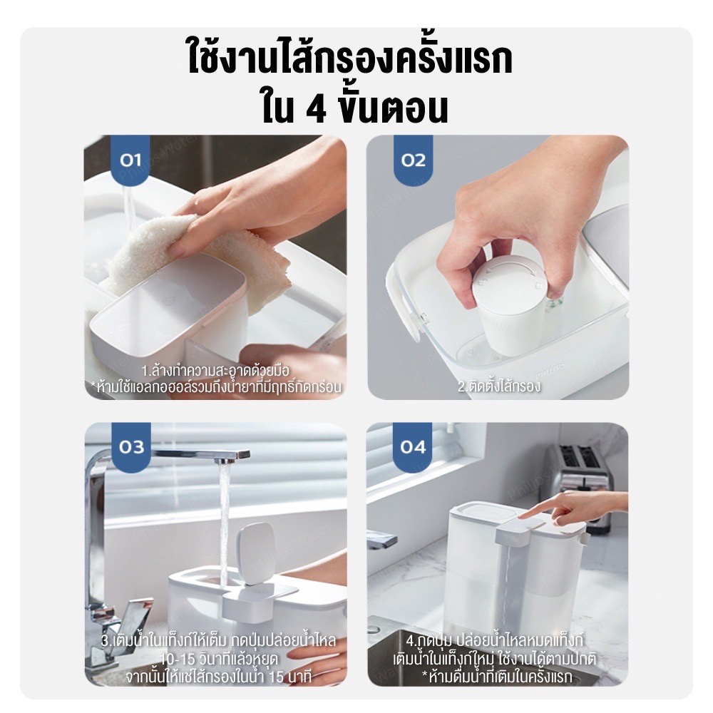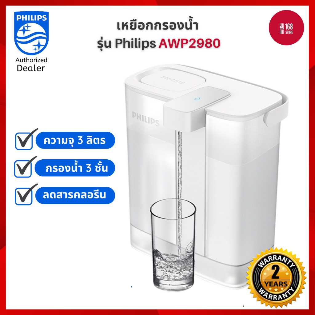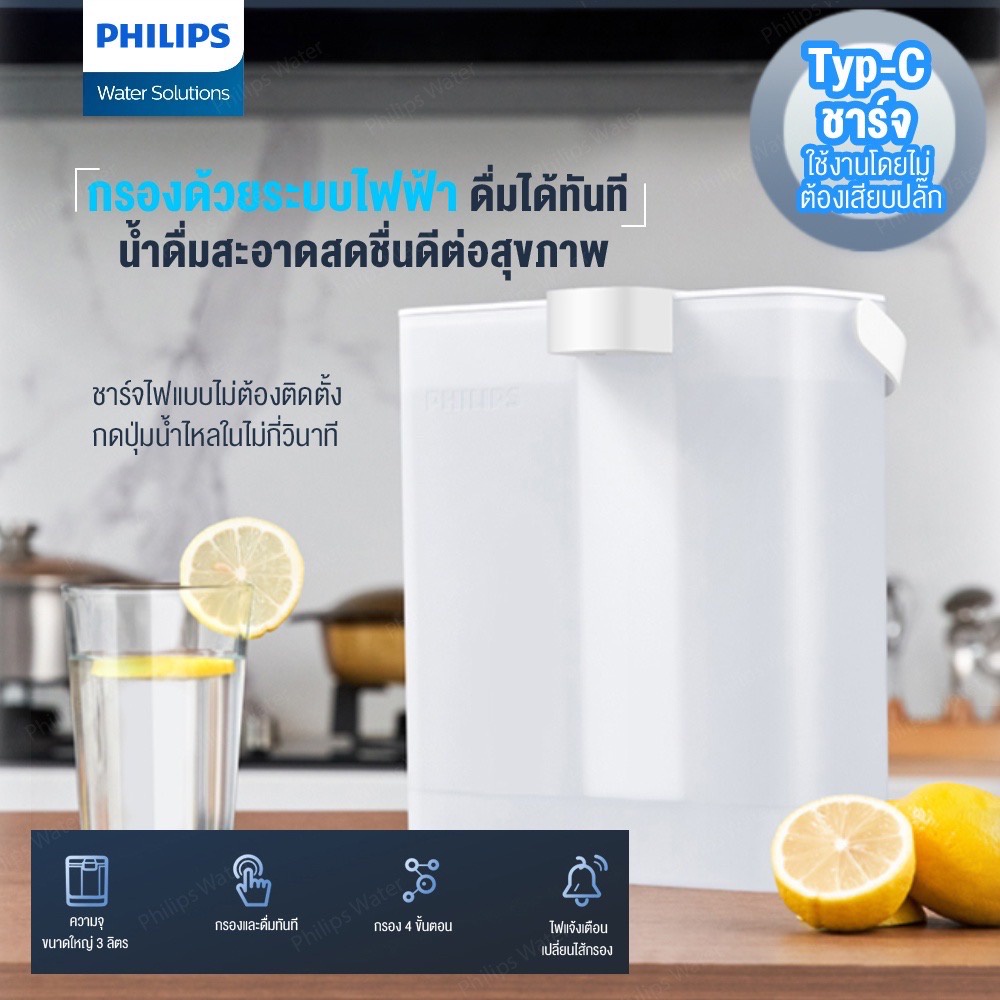 Philips water AWP2980WH เหยือกกรองน้ำ กรองน้ําดื่ม เหยือกกรองน้ำดื่ม เหยือกกดกรองน้ำ สะดวก แบบชาร์จ การกรอง 3 ชั้น