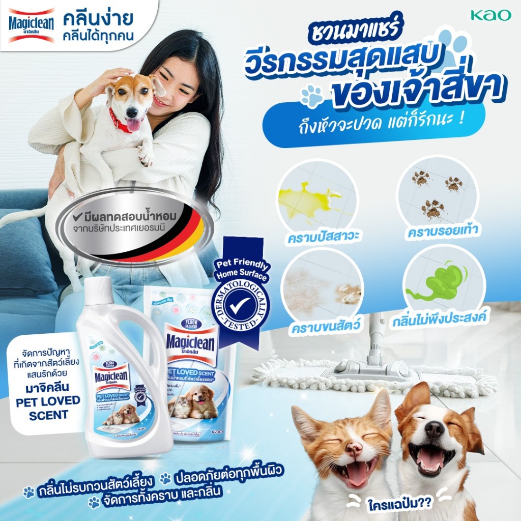 Magiclean มาจิคลีน น้ำยาถูพื้น สำหรับสัตว์เลี้ยง/ขจัดเชื้อแบคทีเรีย ถุงเติม/ขวด ขจัดคราบสกปรก ลดกลิ่น