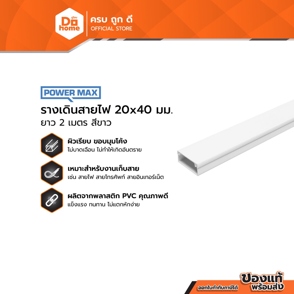 POWER MAX รางเดินสายไฟ 20x40 มม. ยาว 2 ม. สีขาว |SEN|