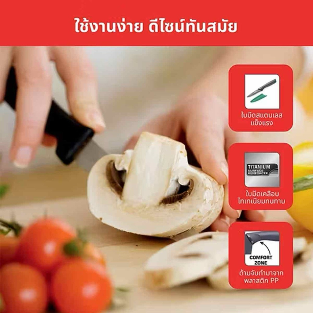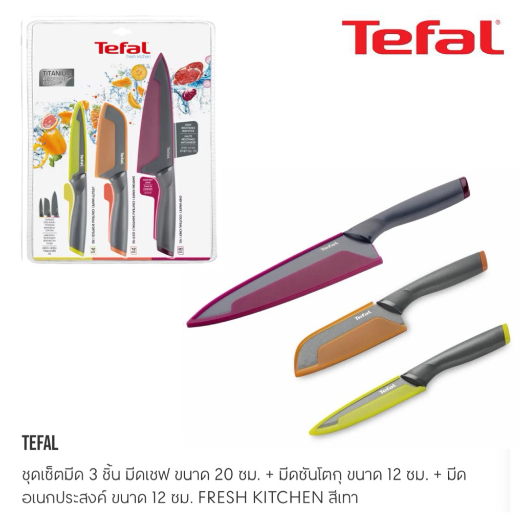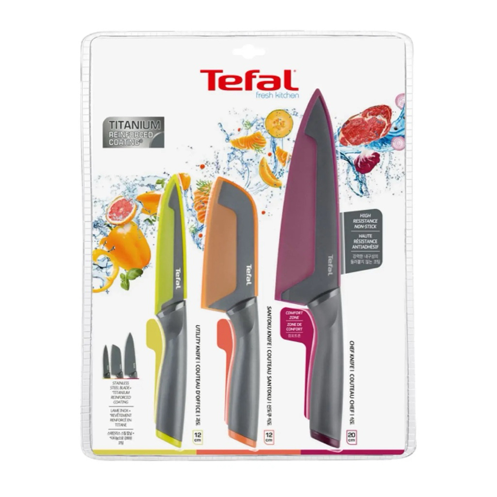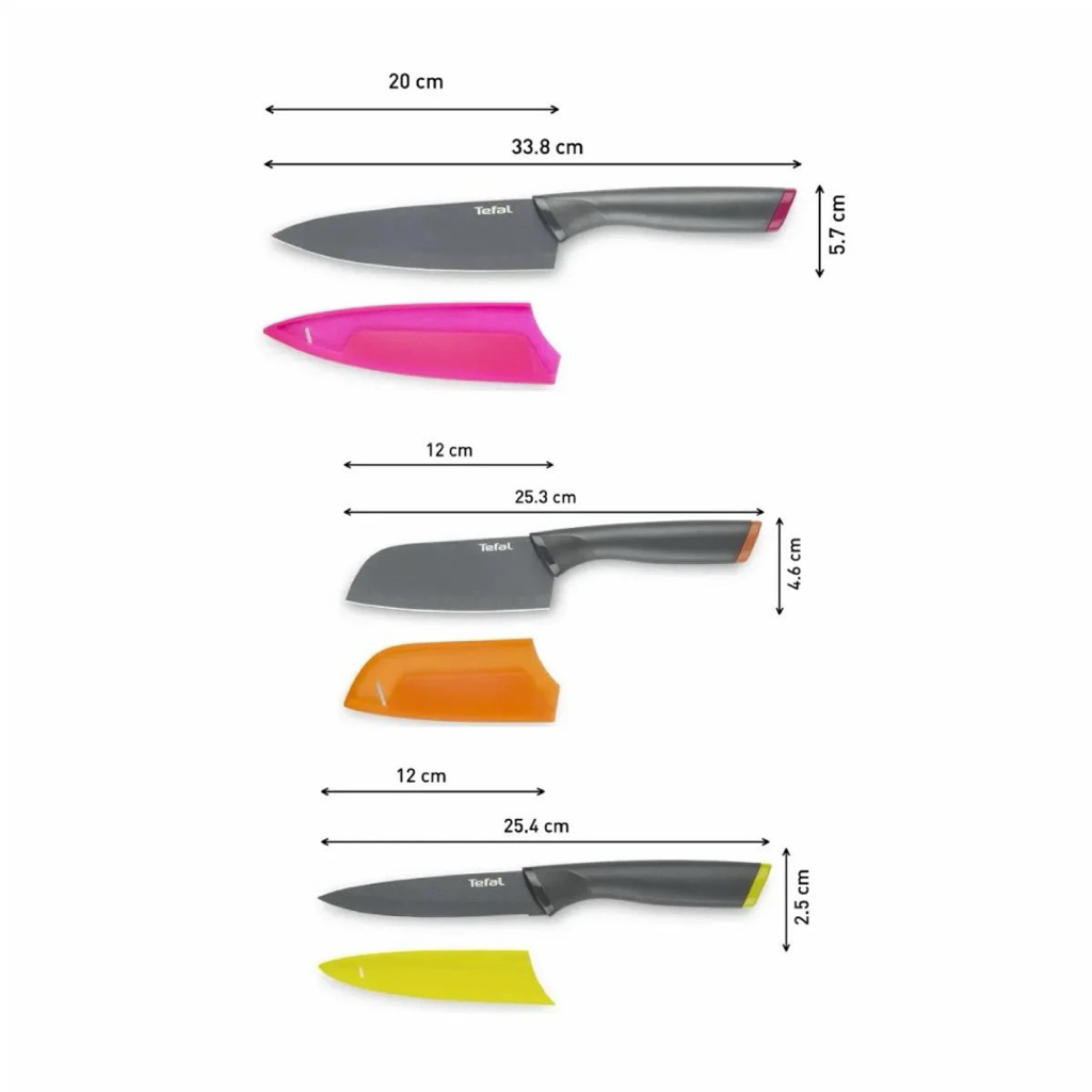 TEFAL Fresh Kitchen ชุดเซตมีด 3 ชิ้น มีดเชฟ 20 ซม. + มีดซันโตกุ 12 ซม. + มีดอเนกประสงค์ 12 ซม. รุ่น K122S324