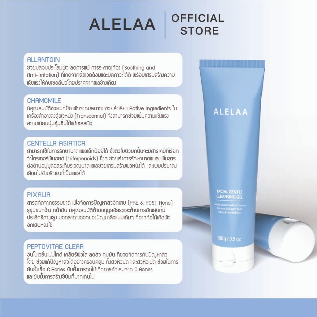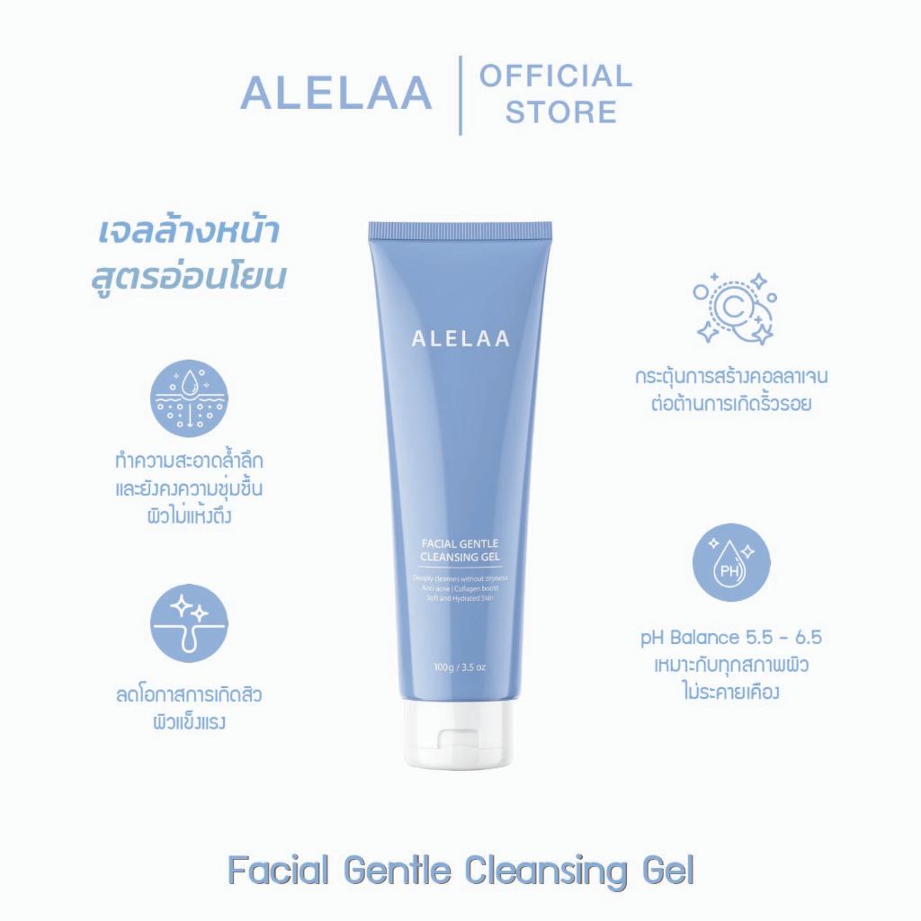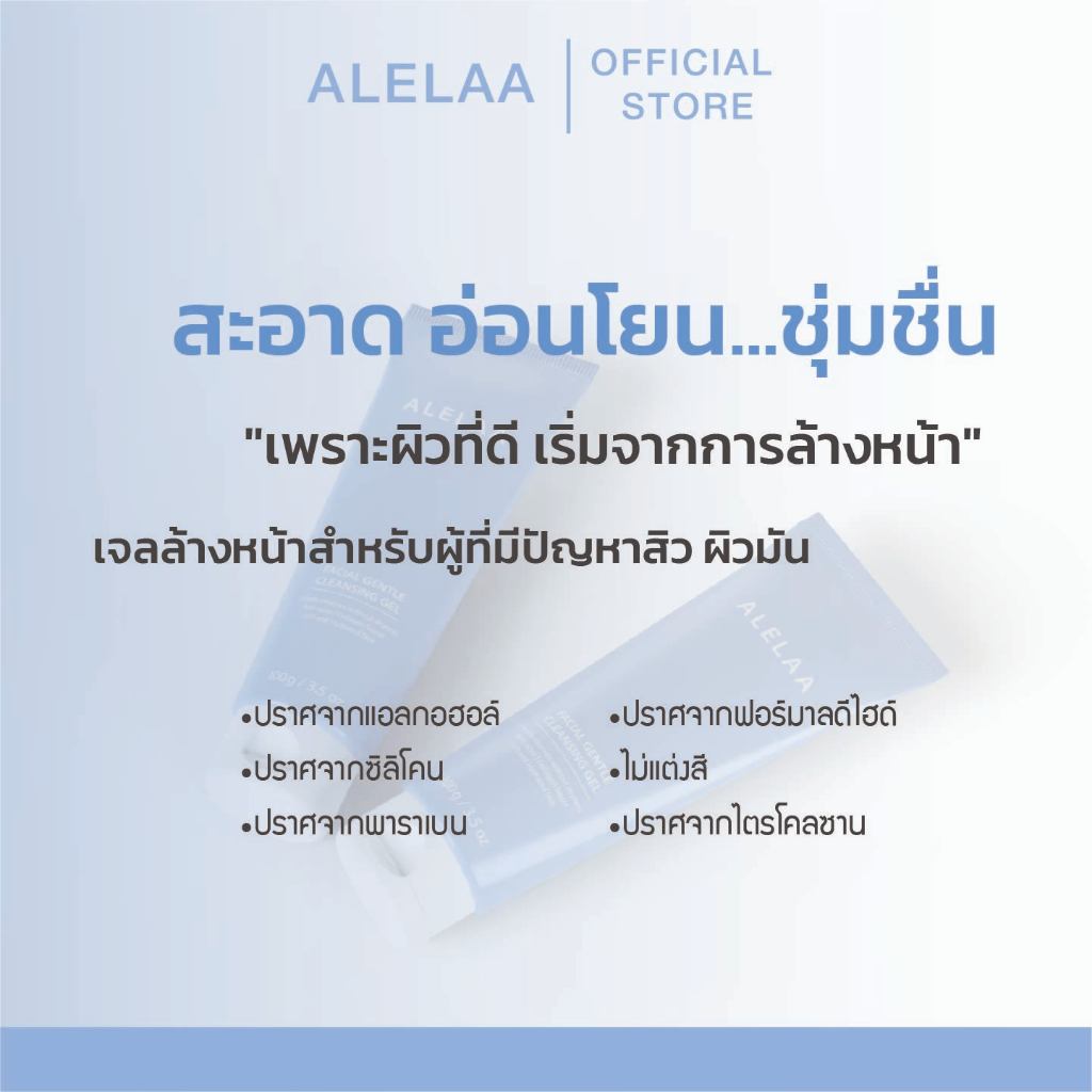 Alelaa | Facial Gentle Cleansing Gel เจลล้างหน้าสูตรอ่อนโยน ลดการเกิดสิว ผิวนุ่มชุ่มชื้น ไม่แห้งตึง