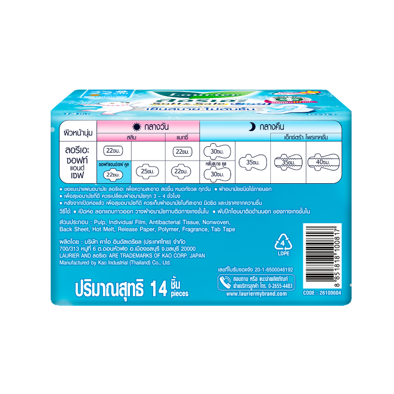ลอรีเอะ ซอฟท์แอนด์เซฟ สลิม คูล 22 ซม. 14 ชิ้น