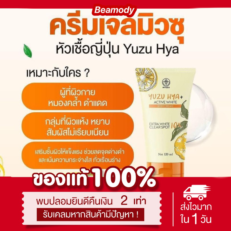 (🍊พร้อมส่ง |ลด100ในไลฟ์📍) แท้💯 ครีมเจลมิวซุ หัวเชื้อญี่ปุ่น 120ml. Yuzu HYA+ Active White Clear Spot ลดรอยแตกลาย