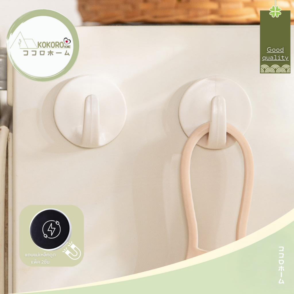 [ส่งด่วน 2 ชม.] Kokoro Home ตะขอแขวนติดผนัง ตะขอแม่เหล็ก แพ็ค2ชิ้น ทรงกลม MB014 ตะขอพลาสติกติดผนัง มินิมอล
