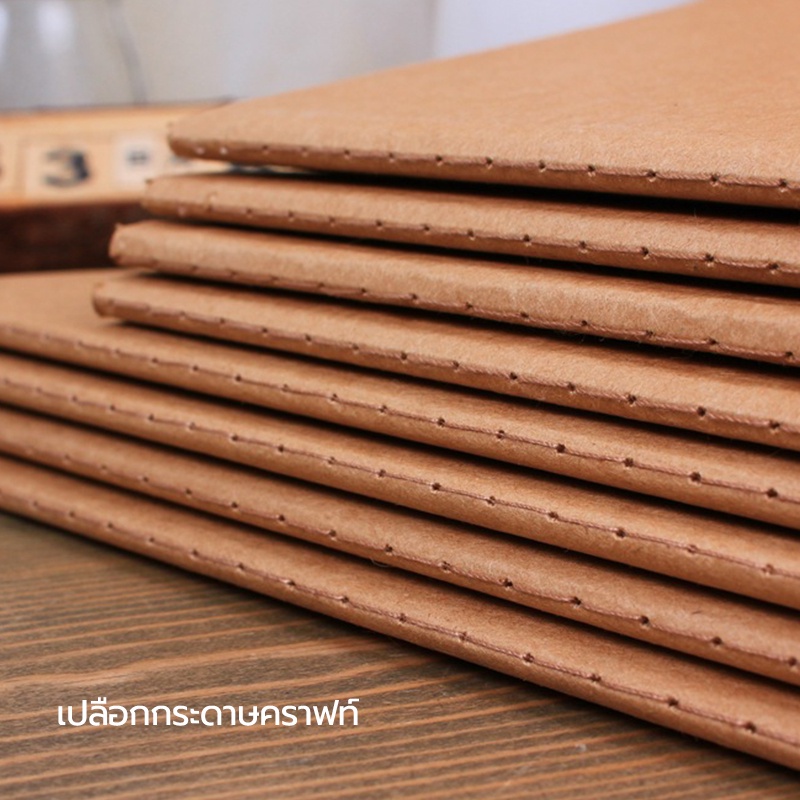 สมุด สมุดโน๊ต เย็บด้าย น้ำตาล มีเส้น เส้นกราฟ ขนาด A5 B5