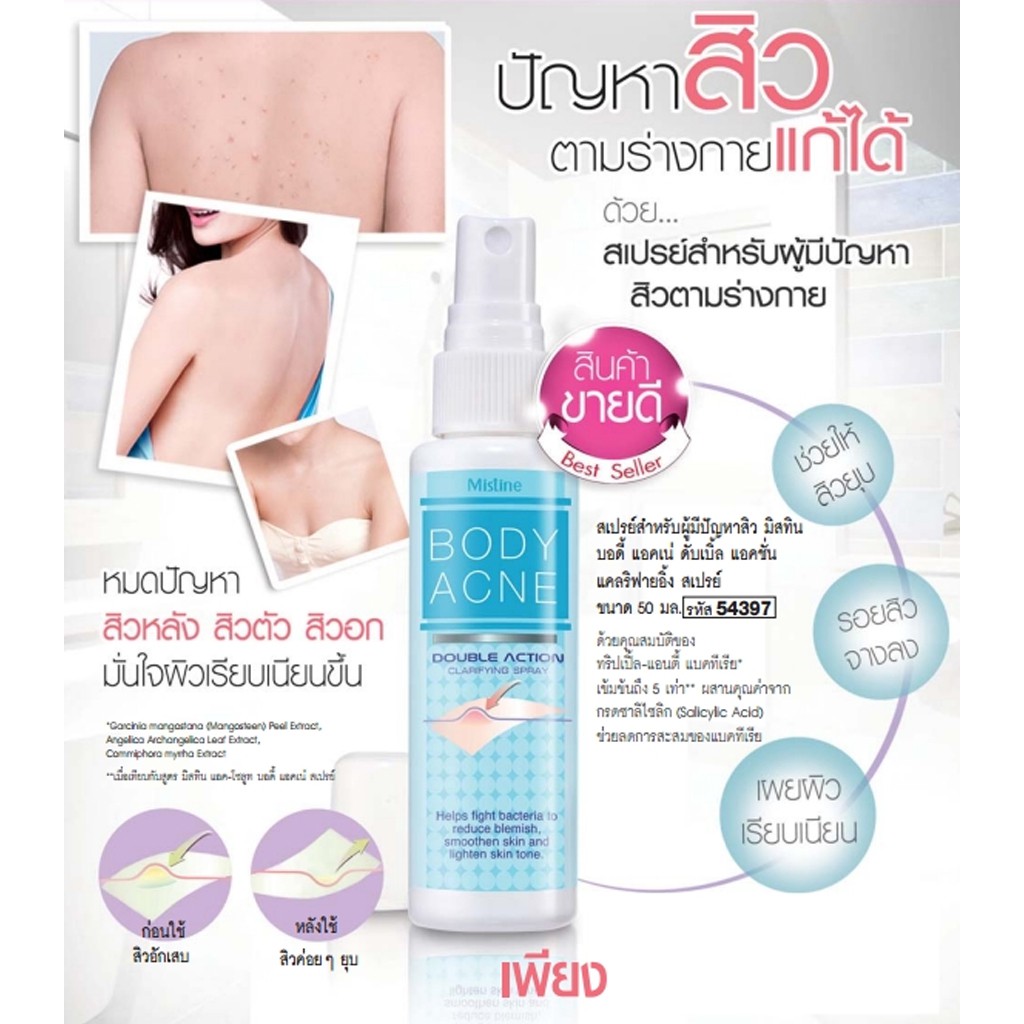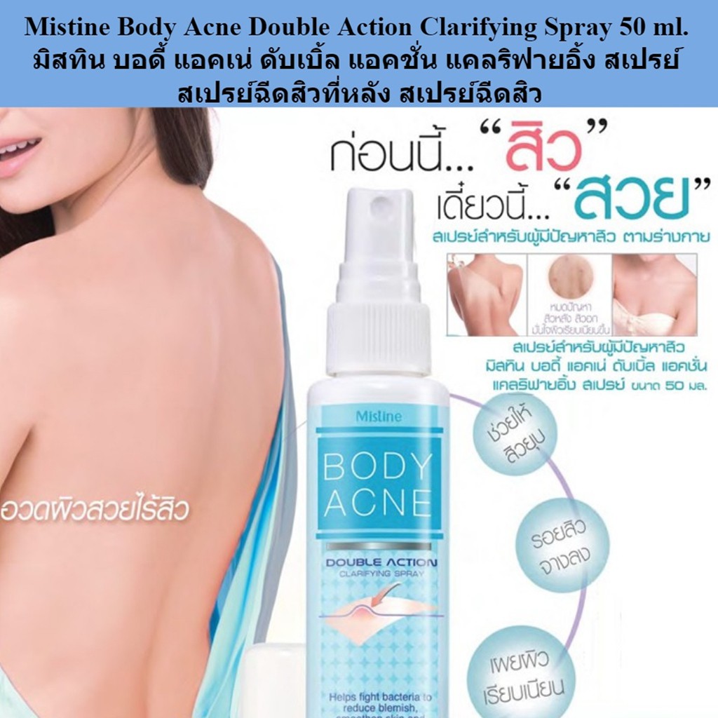 มิสทิน บอดี้ แอคเน่ แคลริฟายอิ้ง สเปรย์ 50 มล. Mistine Body Acne Double Action Clarifying Spray 50 ml.