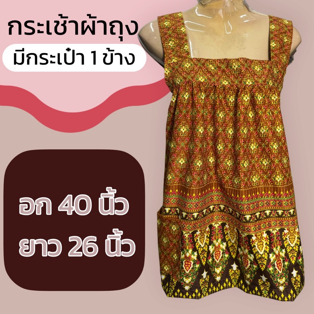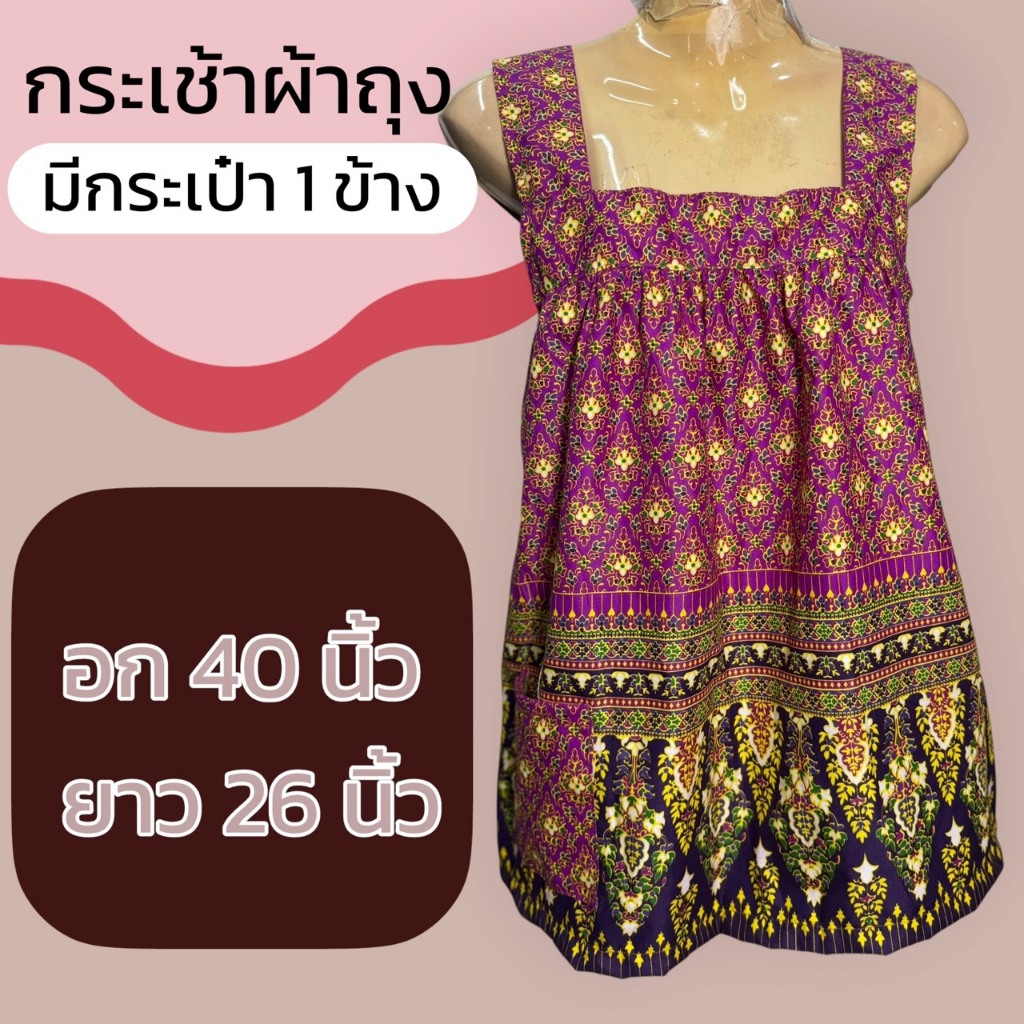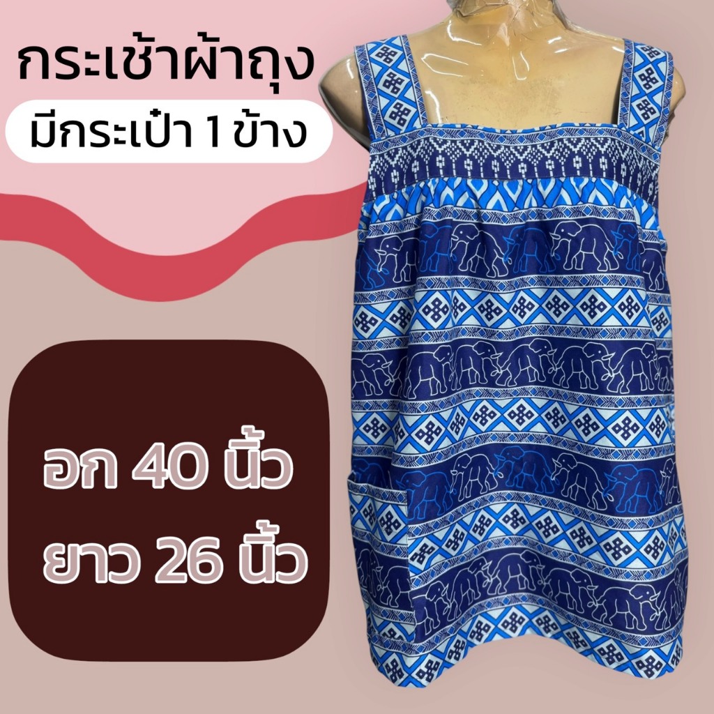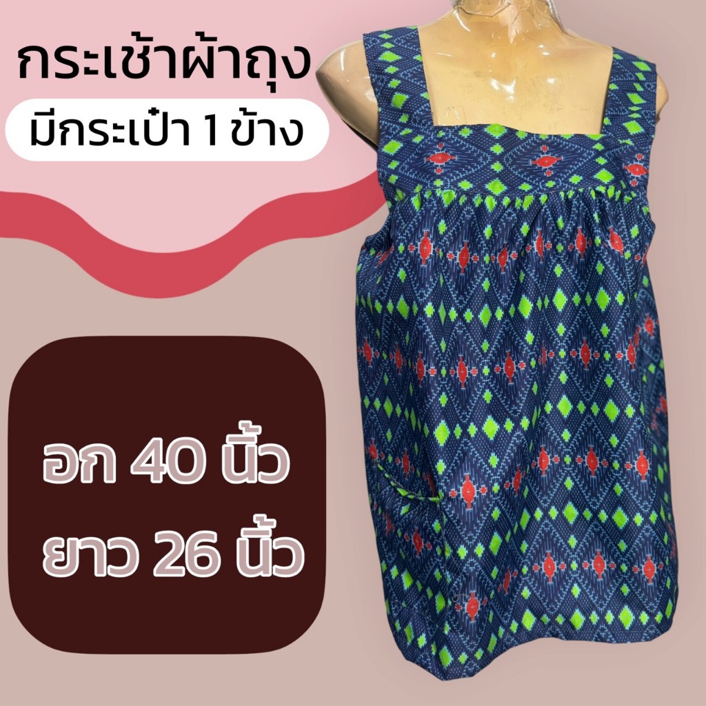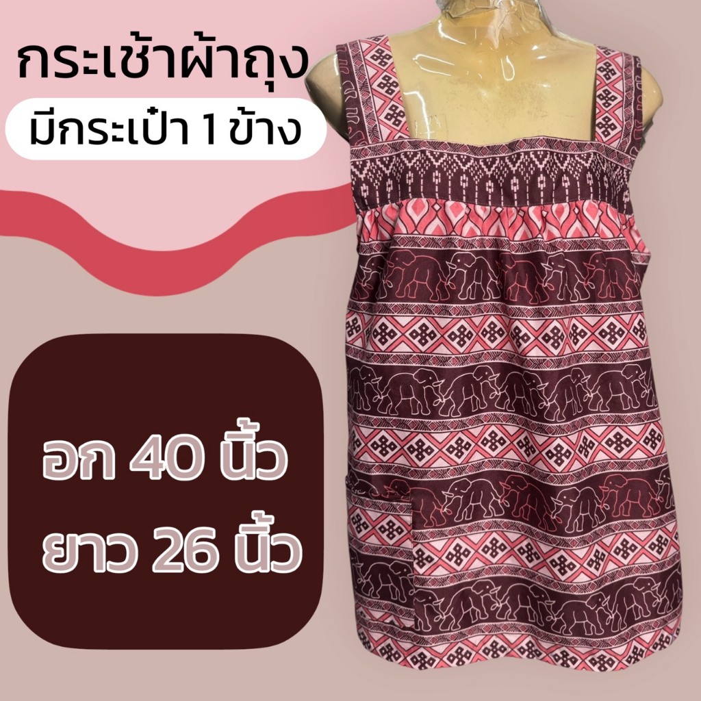 เสื้อคอกระเช้า ทำจากผ้าถุง คอเหลี่ยม มีกระเป๋า 1 ข้าง เสื้ัอผ้าถุง ผู้หญฺิง คนแก่ B16