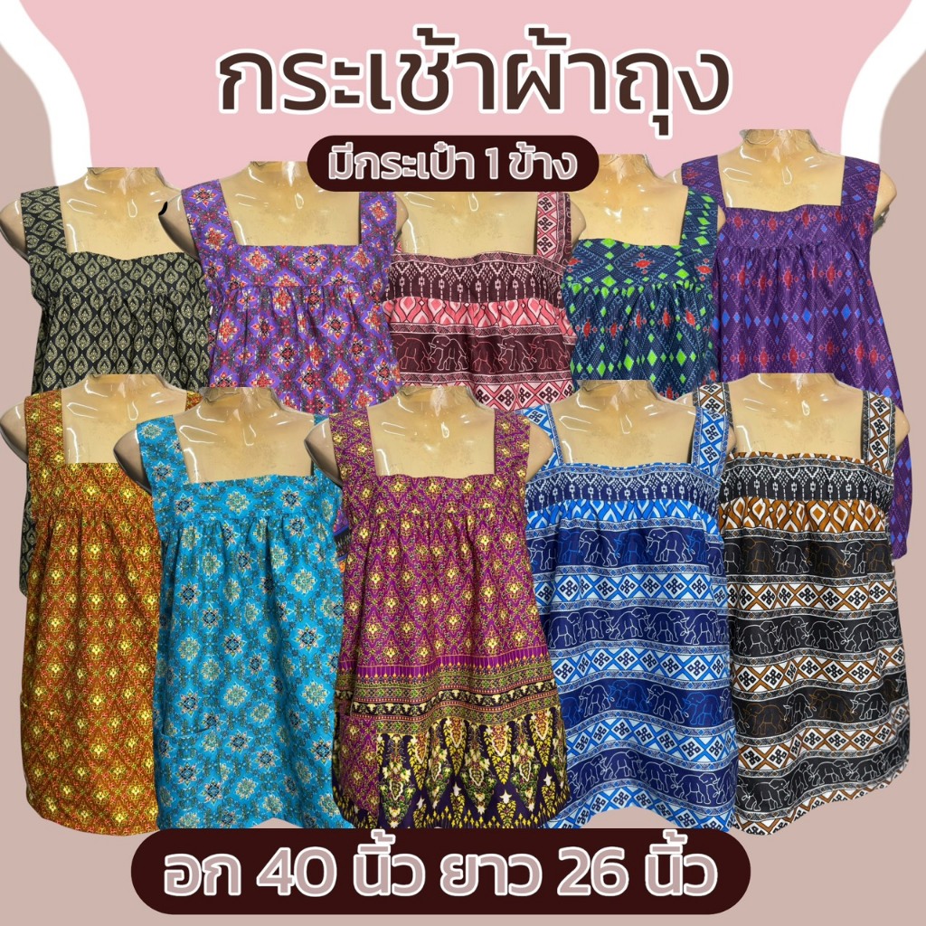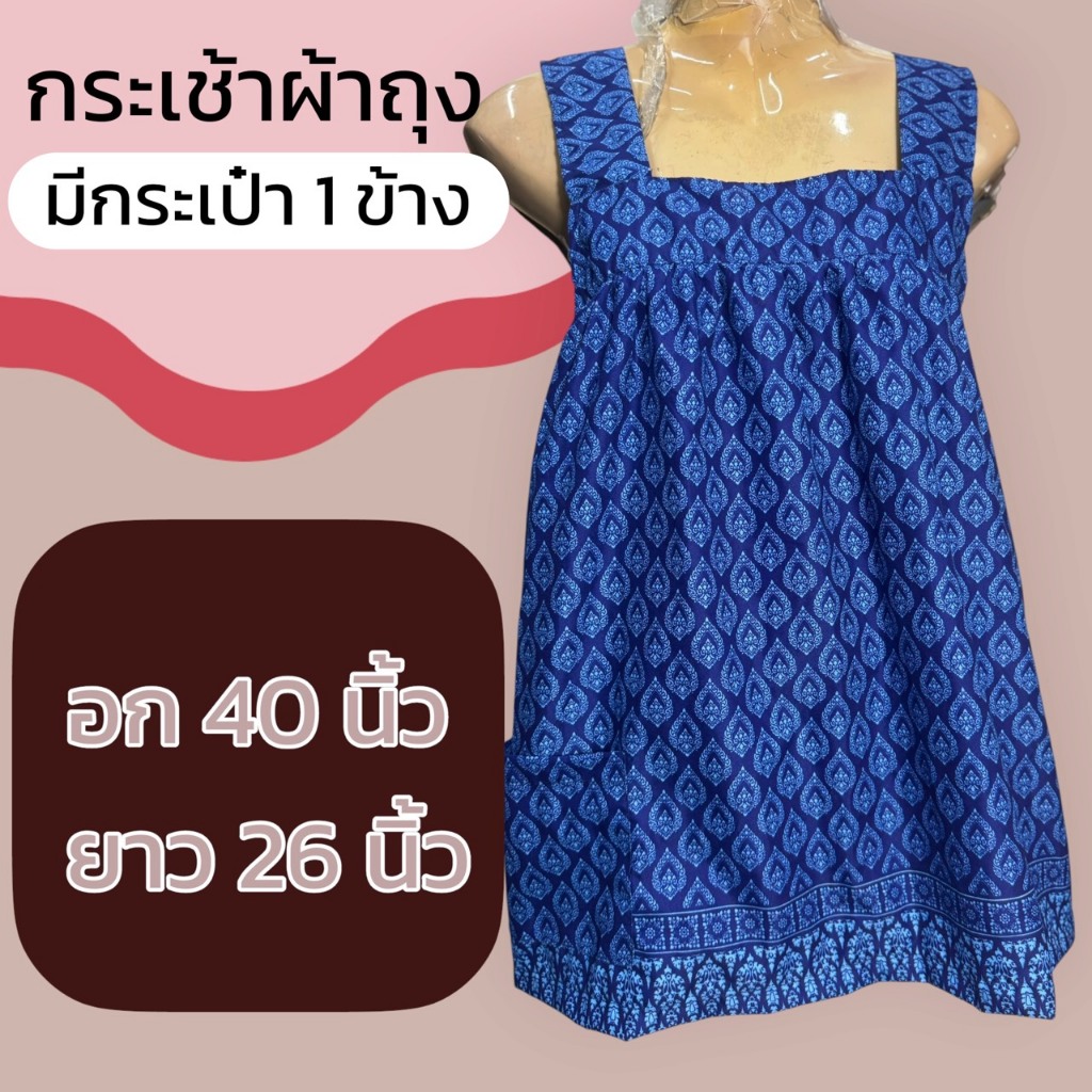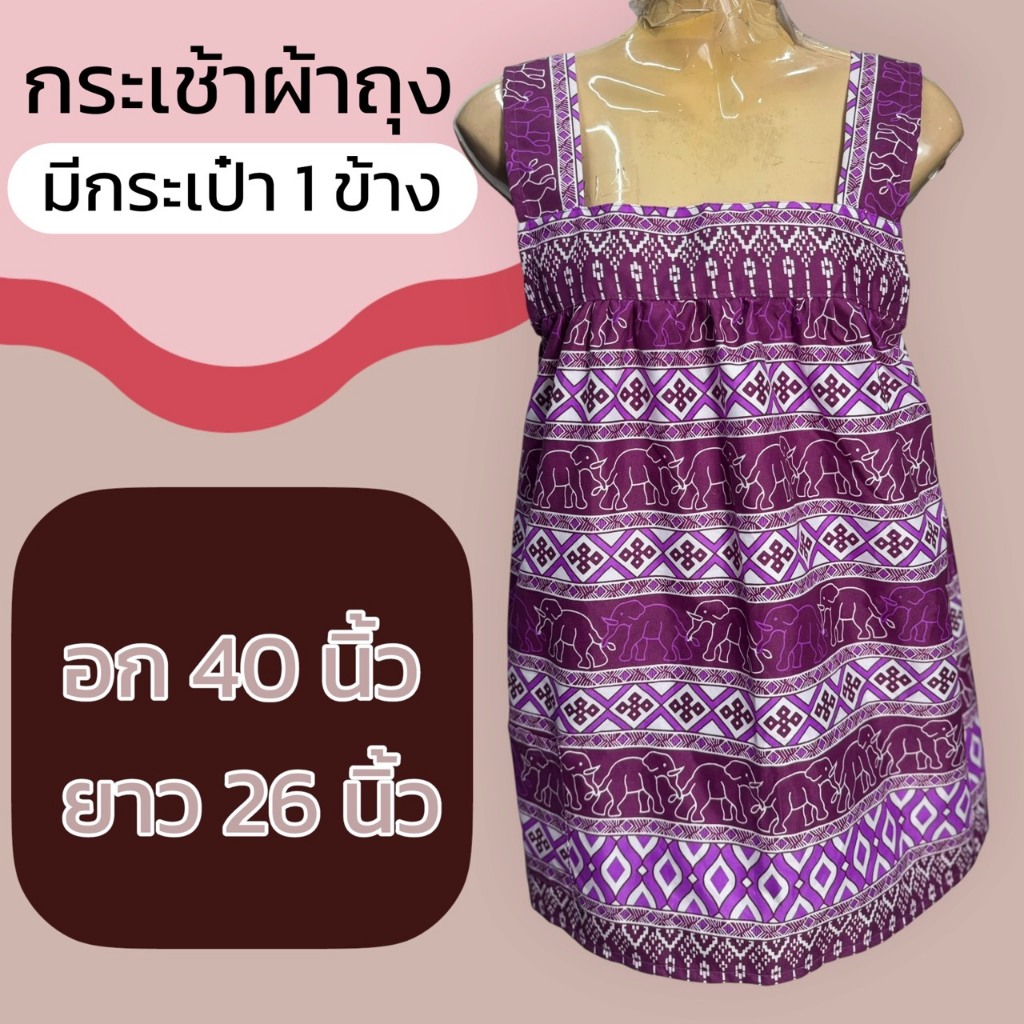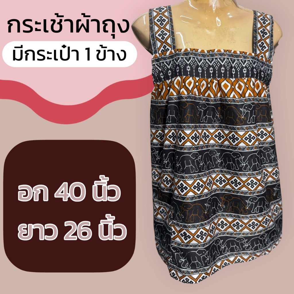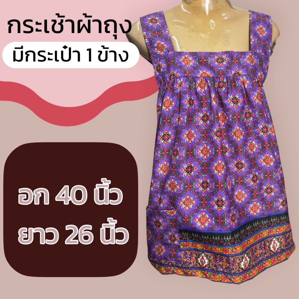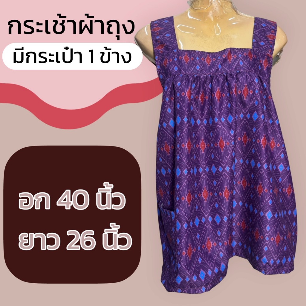 เสื้อคอกระเช้า ทำจากผ้าถุง คอเหลี่ยม มีกระเป๋า 1 ข้าง เสื้ัอผ้าถุง ผู้หญฺิง คนแก่ B16
