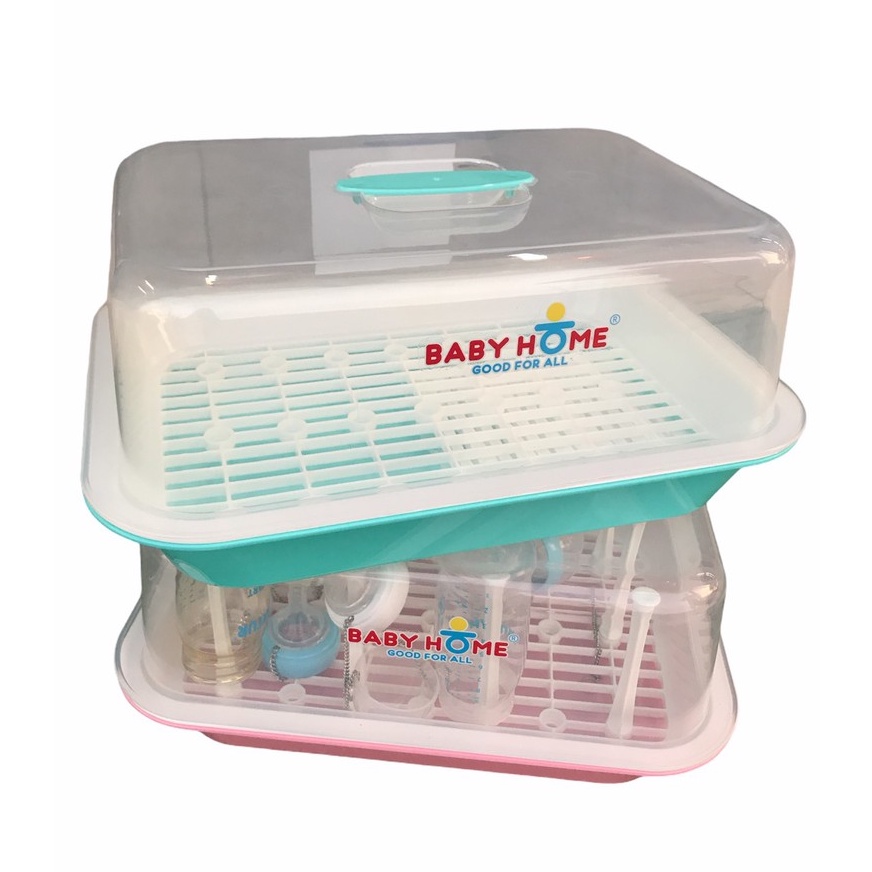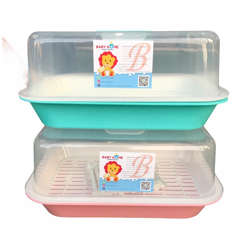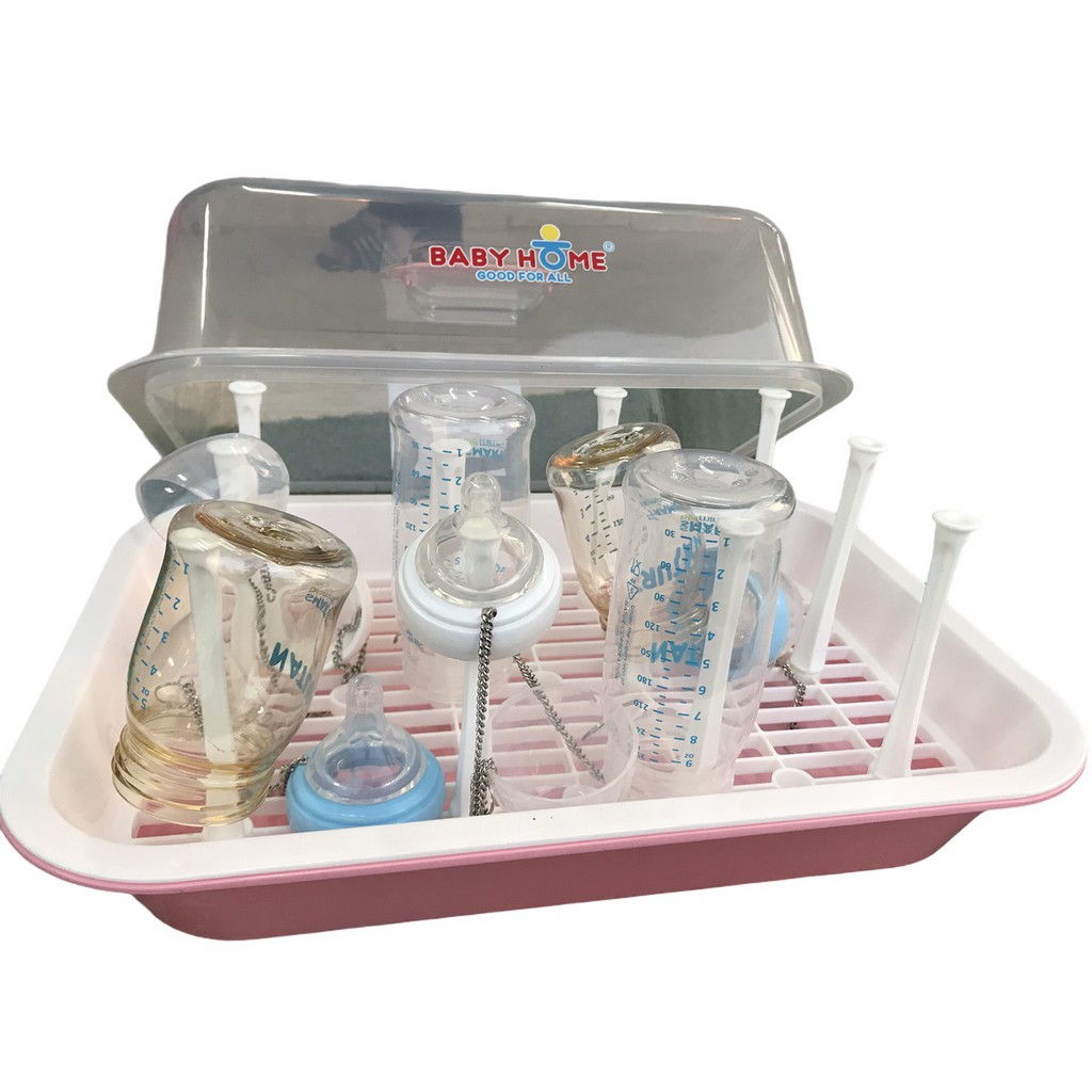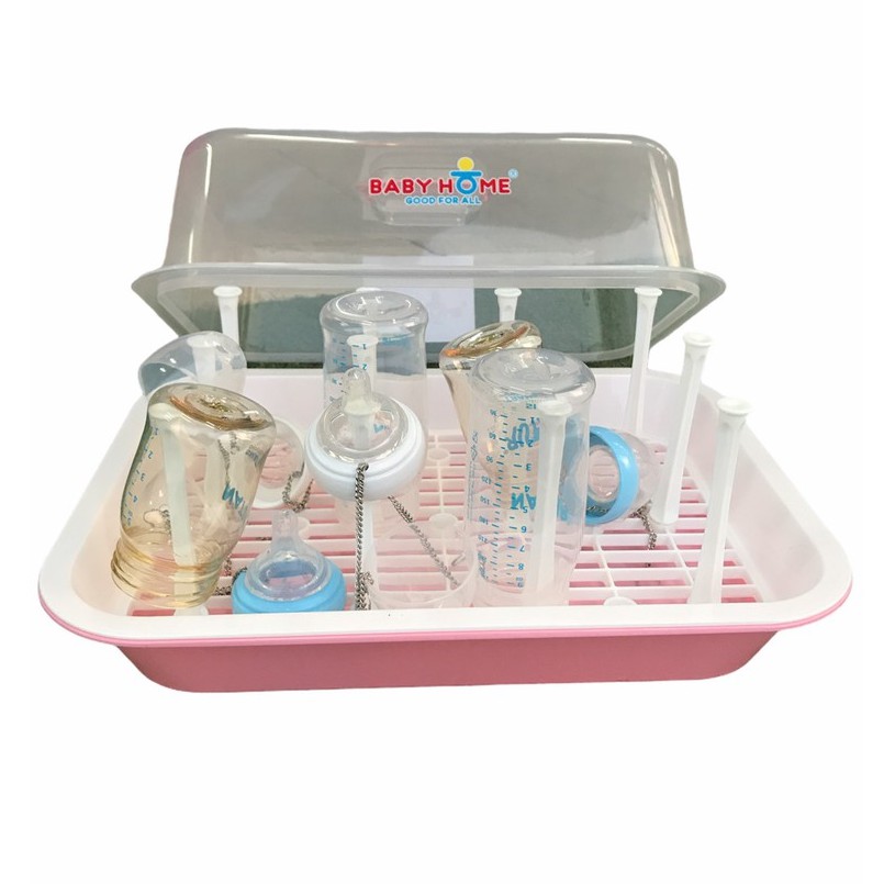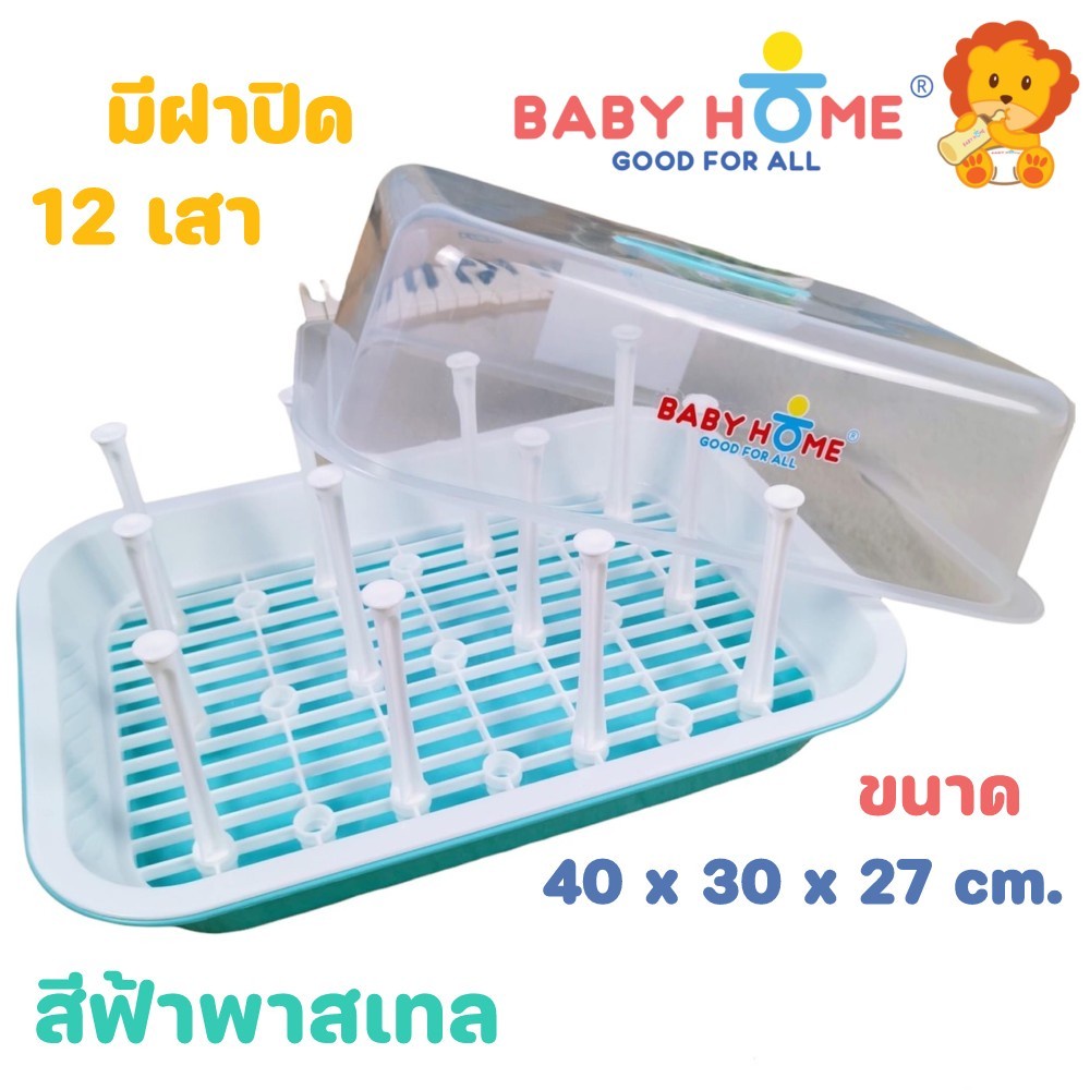 Baby Home ที่ตากขวดนม ที่คว่ำขวดนม สีพลาสเทล สดใส มีก้าน 12 ก้าน พร้อม ฝาปิด
