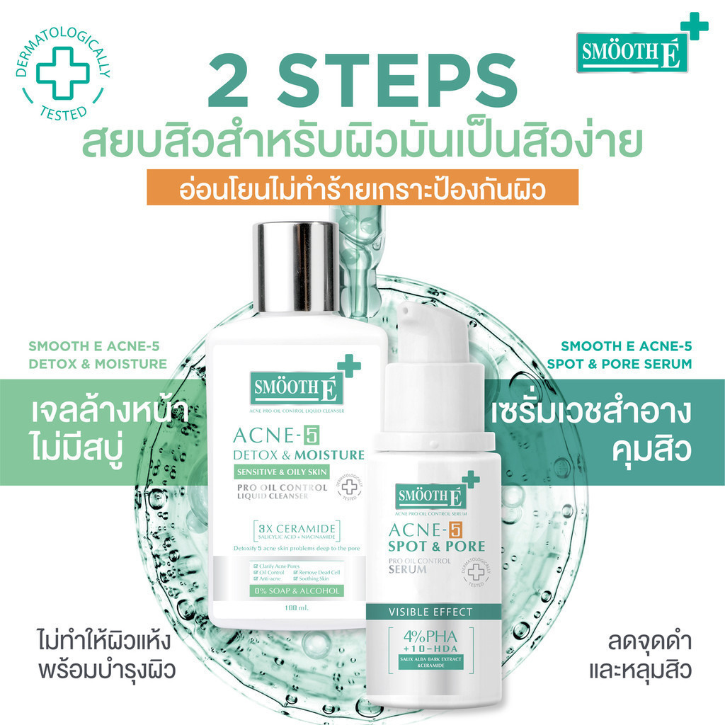 [ใหม่!] Smooth E Acne-5 SPOT & PORE SERUM 30 ml. เซรั่มสำหรับผิวเป็นสิว คุมมัน ลดสิว ปรับสมดุลผิว ลดจุดด่างดำ ลดรอยสิว