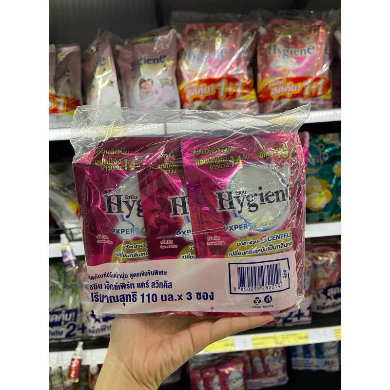 (6 ถุง) ไฮยีน ผลิตภัณฑ์ปรับผ้านุ่มสูตรเข้มข้น ขนาด 110 มล. จำนวน 6 ถุง