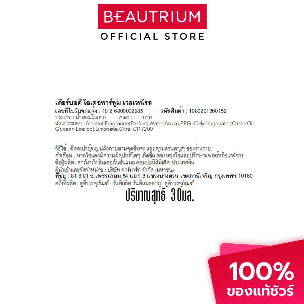 DEAR BODY Eau De Parfum น้ำหอม 30ml (1-20)