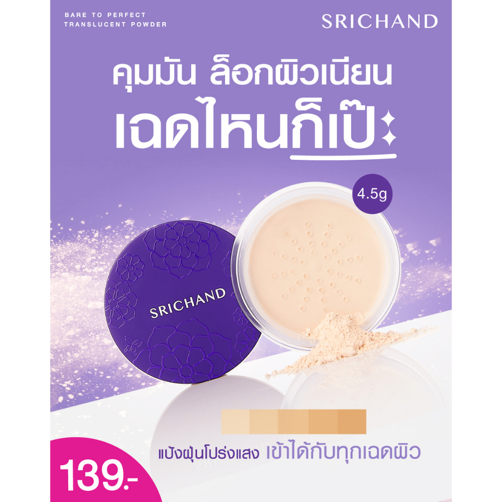 [Sale][Exp.01/05/26]SRICHAND Perfect Translucent & Bare Perfect Powder ศรีจันทร์ แป้งฝุ่น แป้งอัดแข็ง เซตผิว คุมมัน
