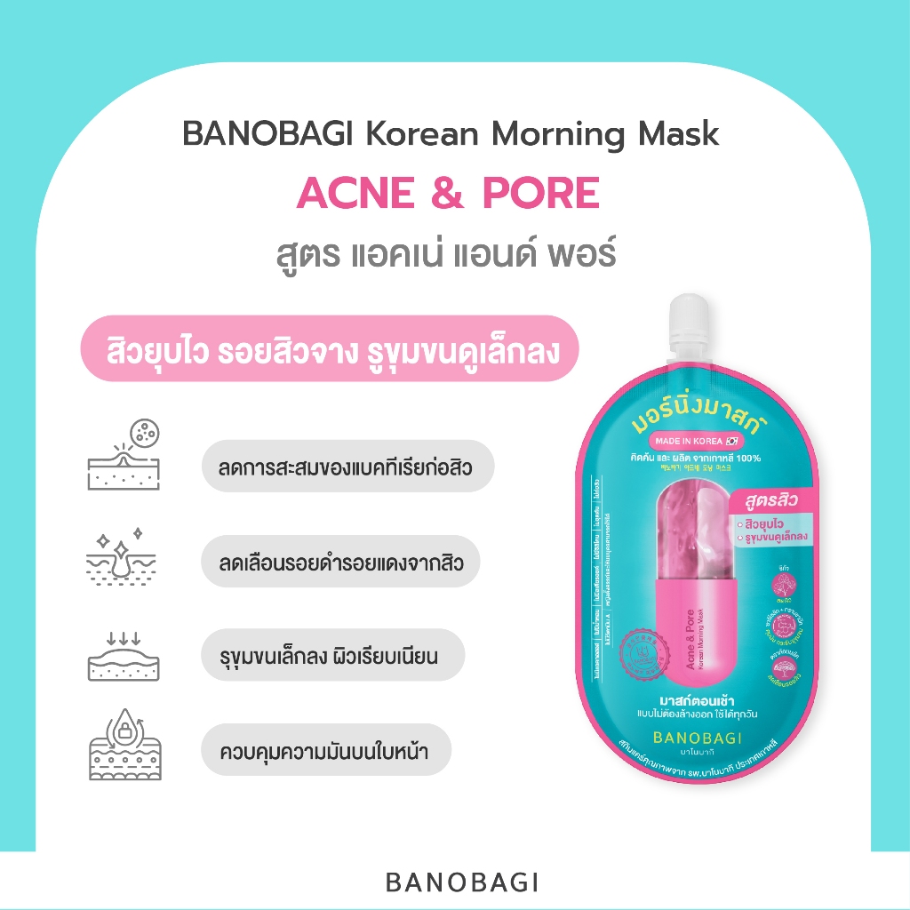 [EXP.2026/08] (ยกแพ็ก 6 ซอง) BANOBAGI Korean Morning Mask(บาโนบากิ โคเรียน มอร์นิ่งมาสก์)