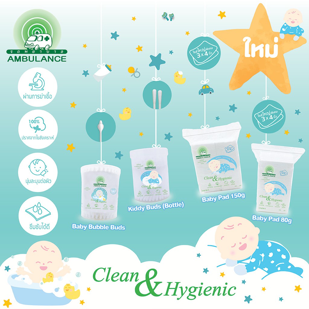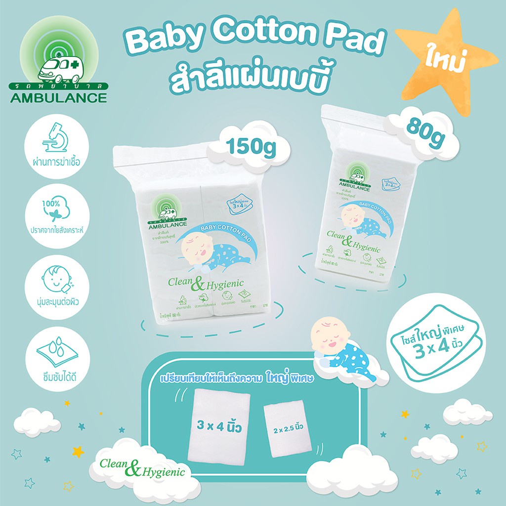 รถพยาบาล **(สำลีเด็ก แผ่นใหญ่พิเศษ 3*4นิ้ว)** ไซส์ใหญ่พิเศษ 150กรัม