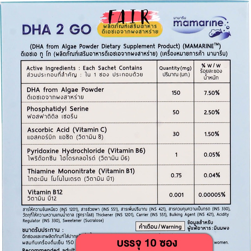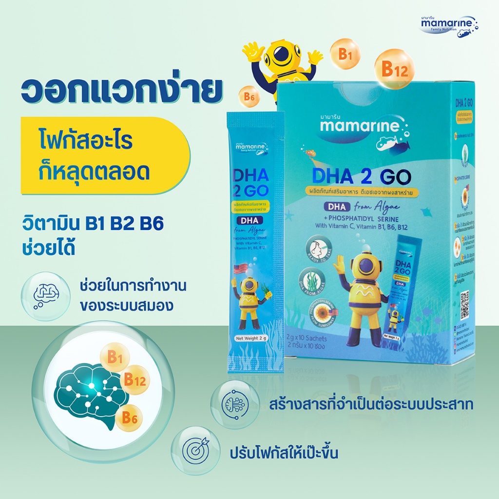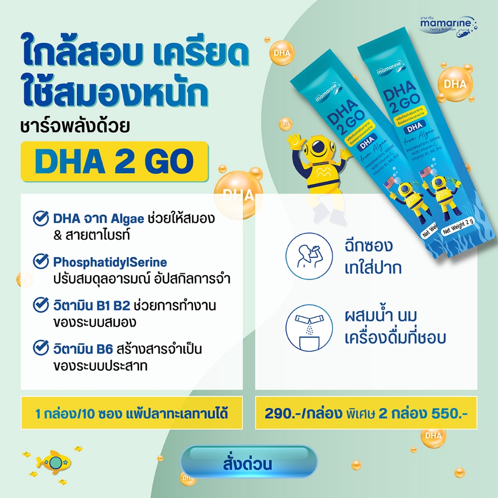 Mamarine DHA 2 Go มามารีน ดีเอชเอ ทูโก [10 ซอง] ดีเอชเอเด็ก DHA สำหรับเด็ก