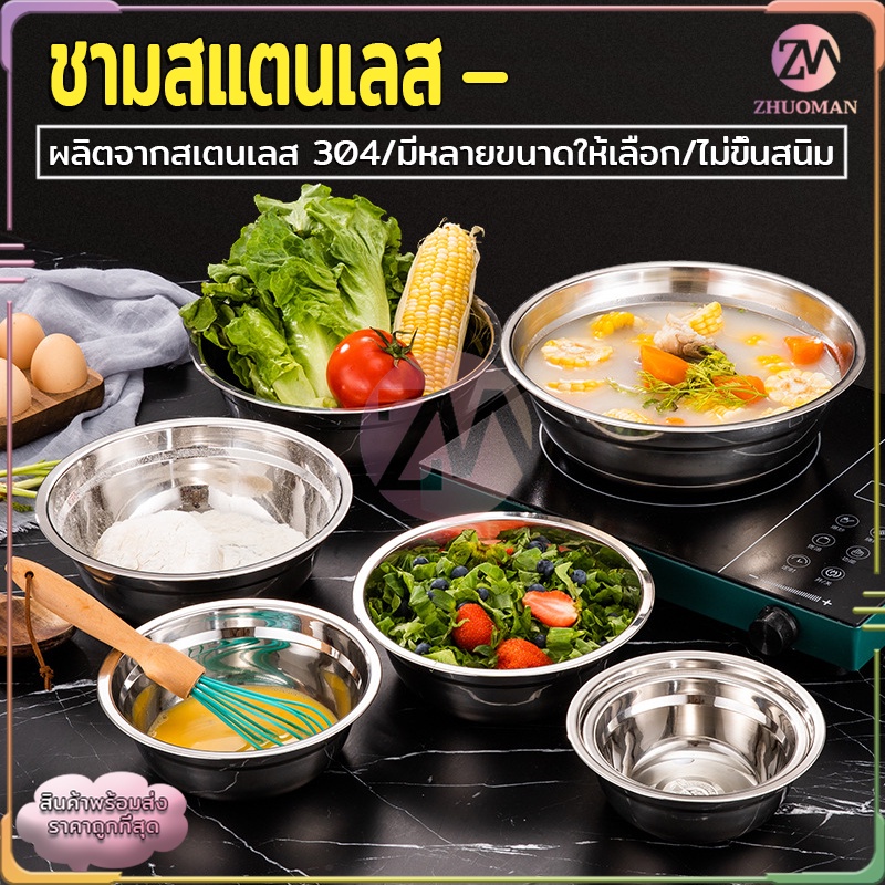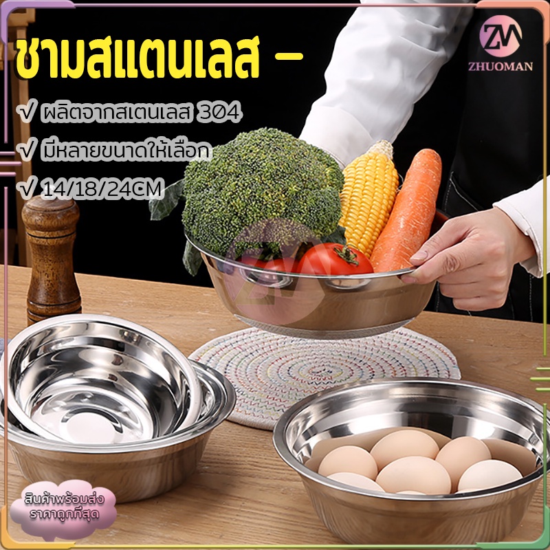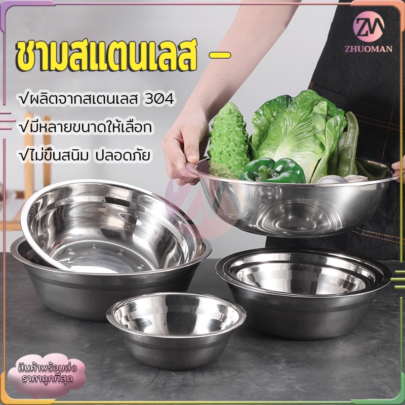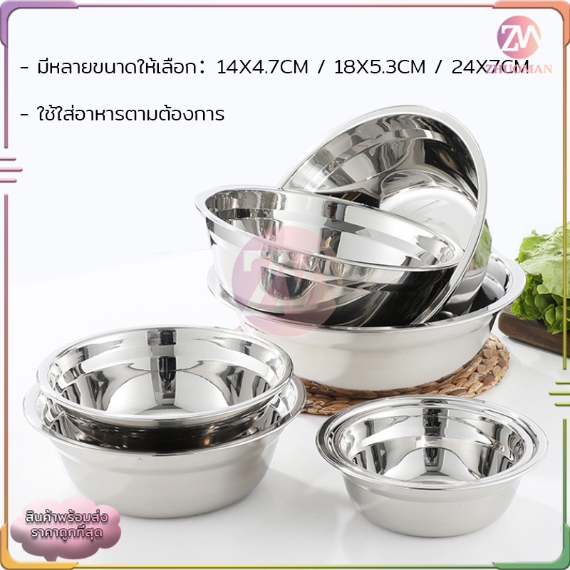 ชามสแตนเลส ชามใส่อาหาร ถ้วยสแตนเลส ชามใส่ซุป 304สแตนเลส อย่างดี ไม่ขึ้นสนิม ทนทานต่อการใช้งาน ทำความสะอาดง่าย มี 3 ขนาด