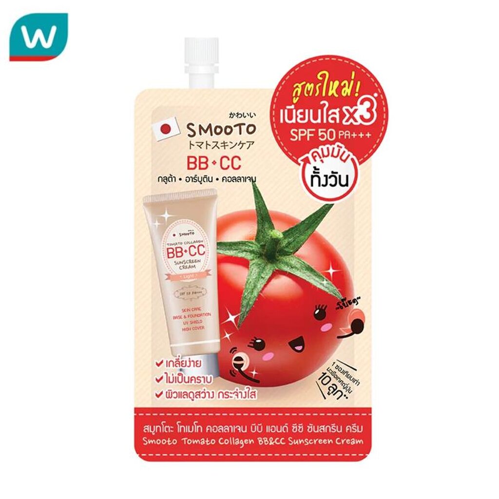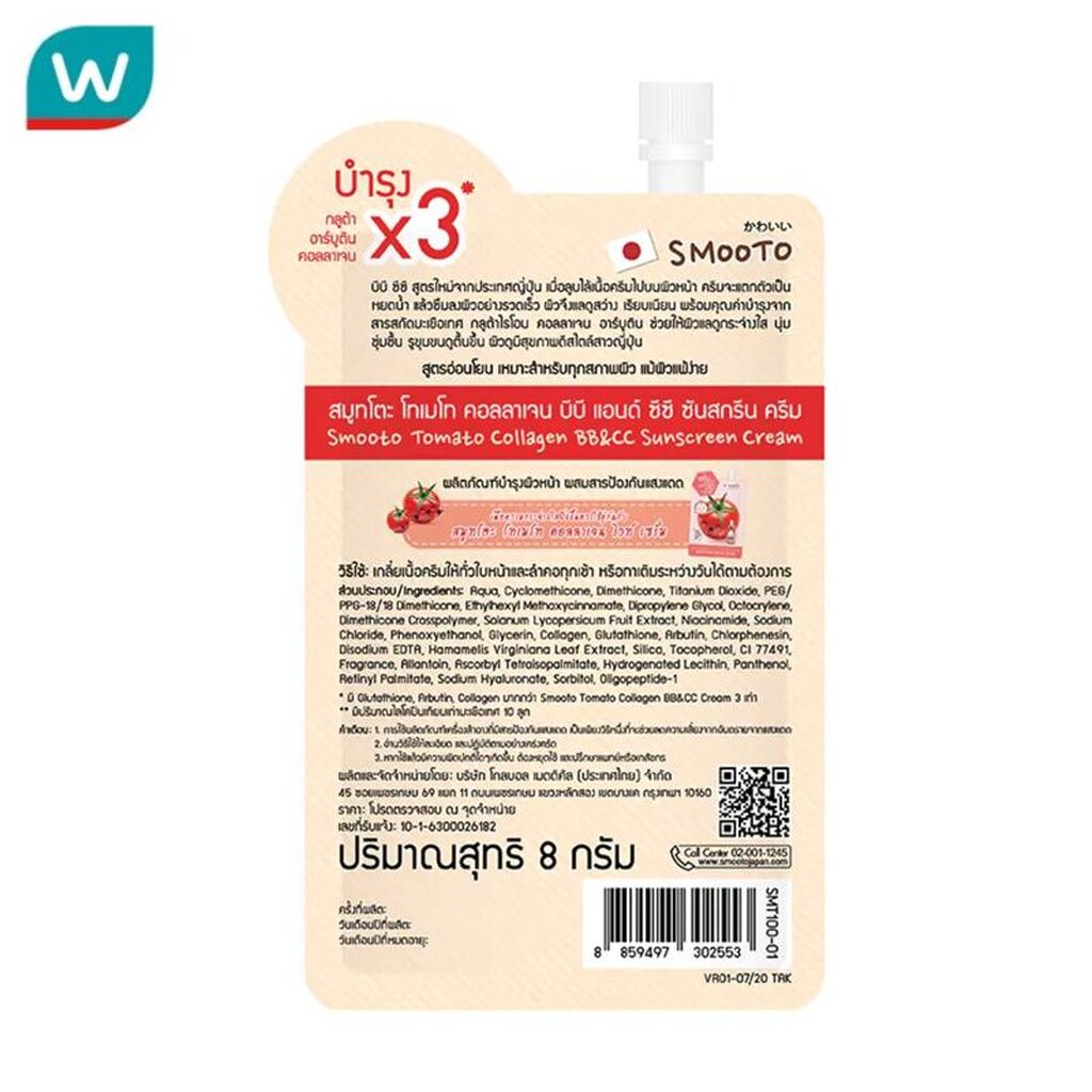 Smooto สมูทโตะ โทเมโท คอลลาเจน บีบี แอนด์ ซีซี ซันสกรีน ครีม SPF50 PA+++ 8ก.
