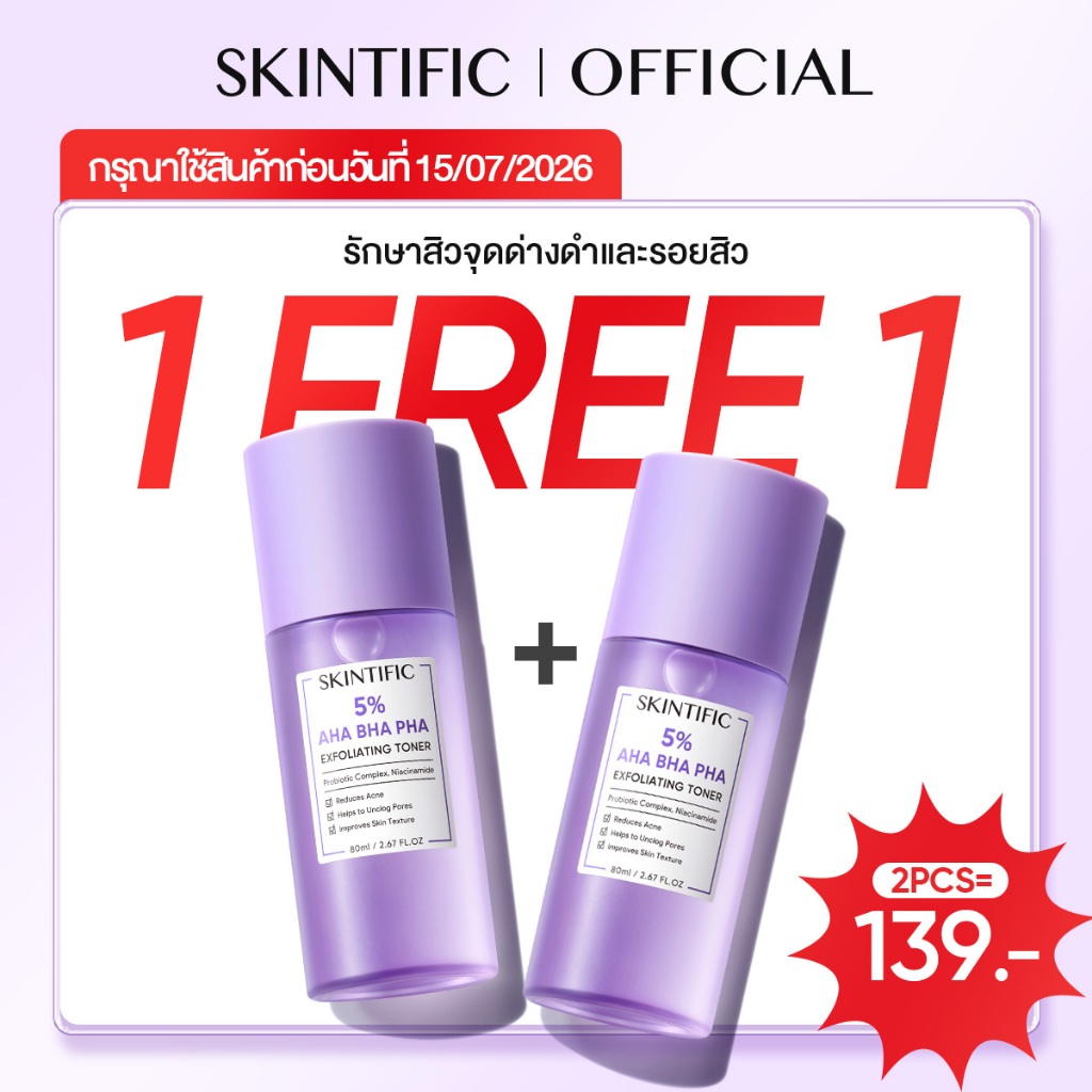 SKINTIFIC Toner โทนเนอร์ 5% AHA BHA PHA น้ําตบ น้ำตบ ผลัดเซลล์ผิว Exfoliating คาล์มมิ่ง ไบรท ์เทนนิ่ง ซูทติ้ง น้ำตบจบโทรม