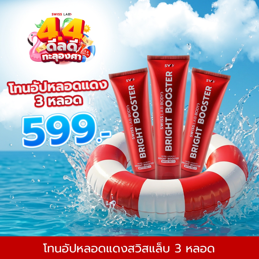 (3 หลอด) ครีมบำรุงและกันแดด ผิวกาย สวิสแล็บหลอดแดง บอดี้ ไบร์ท บูสเตอร์ SPF50+ PA++++ SWISSLAB