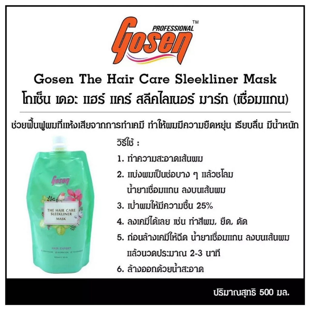 โกเซ็น เดอะ แฮร์ แคร์ สลีคไลเนอร์ มาส์ก เชื่อมแกนผม Gosen The Hair Care Sleekliner Mask 500 ml.