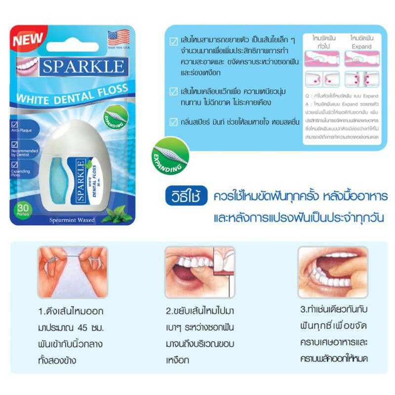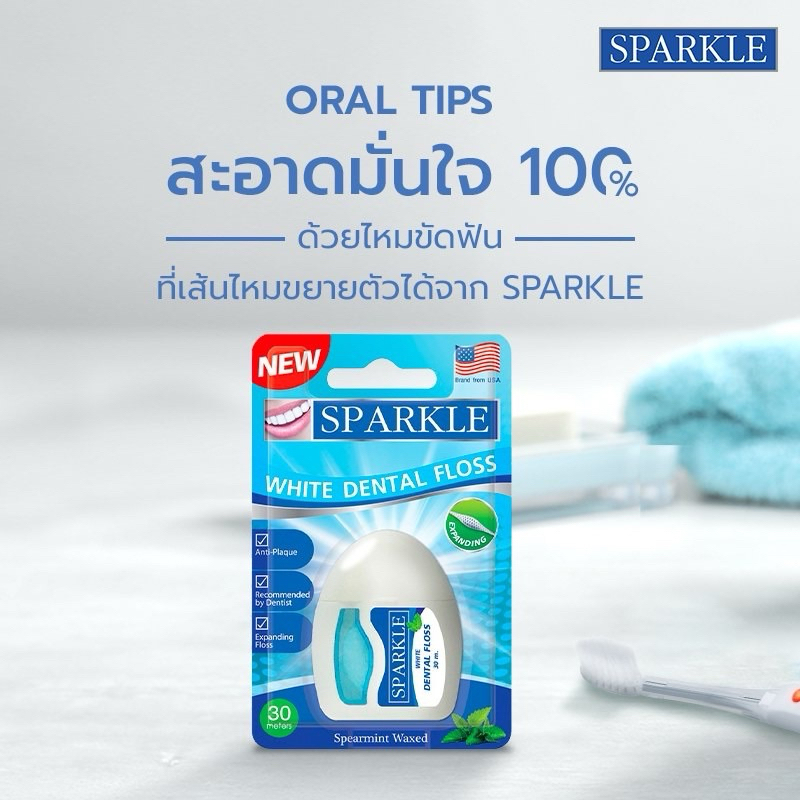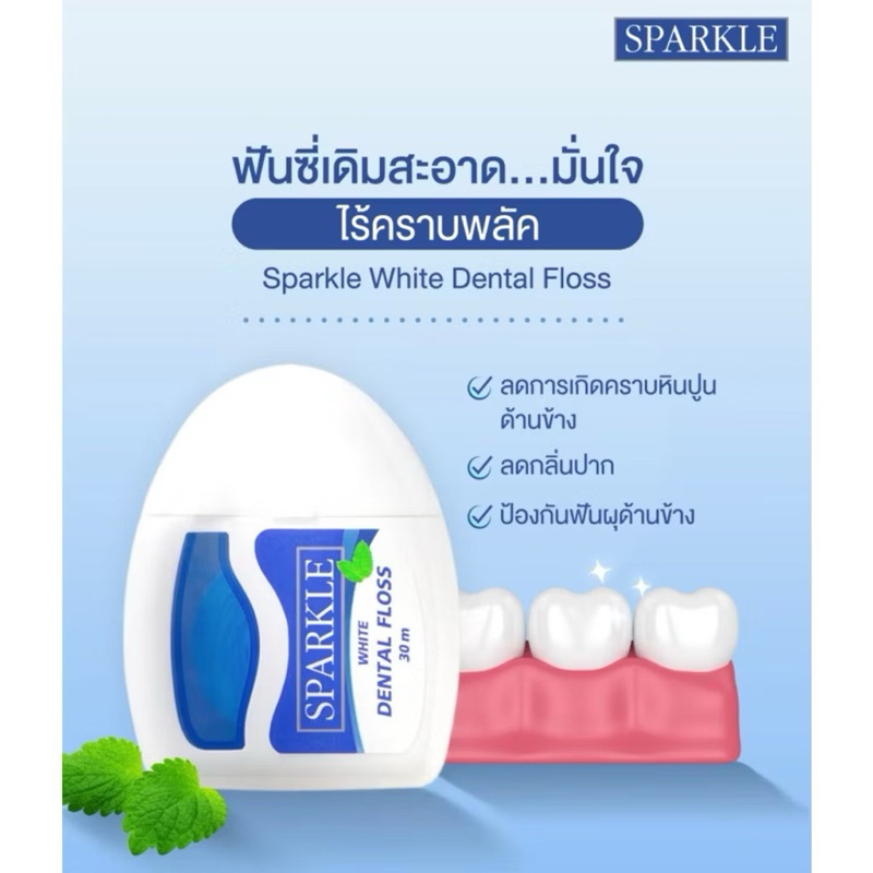 พร้อมส่ง💓| SPARKLE White Dental Floss ไหมขัดฟัน สปาร์คเคิล ไวท์ เดนทัลฟลอส ขนาด 30 เมตร ❎EXP.03/27