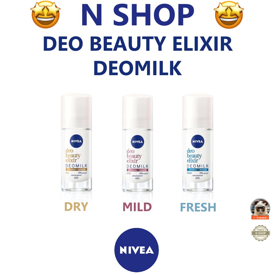 🌟 เซรั่มโรลออน ลดเหงื่อ ระงับกลิ่นกาย นีเวีย NIVEA DEO BEAUTY ELIXIR DEOMILK 40ml.