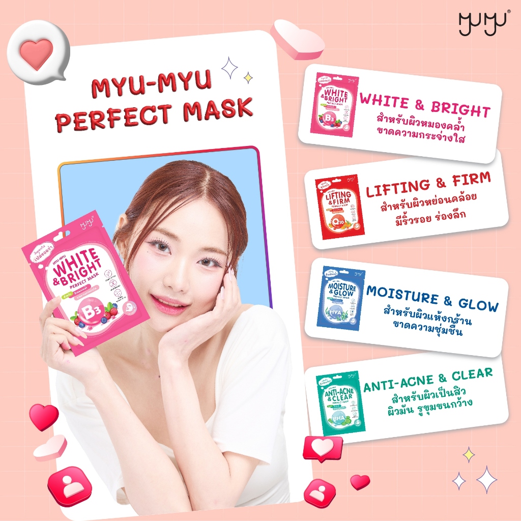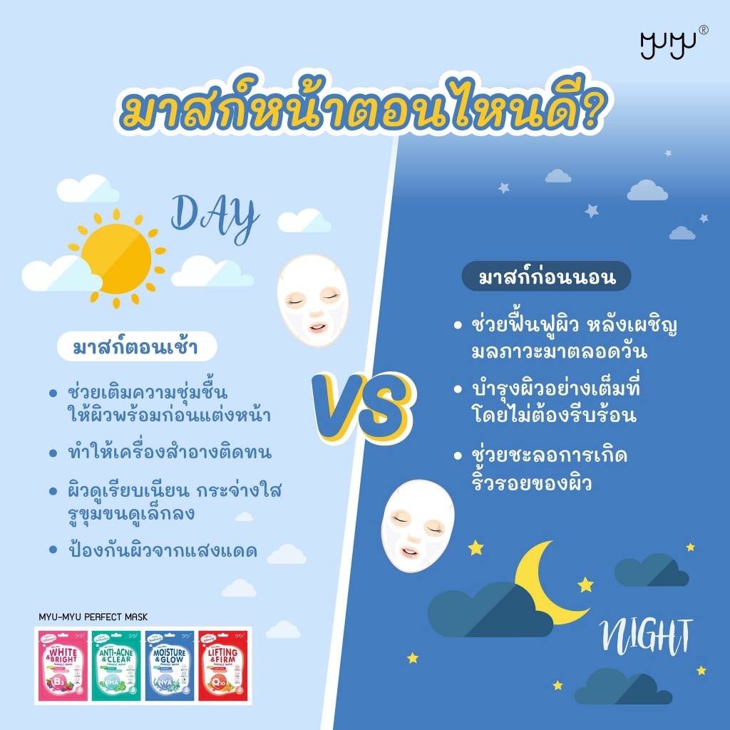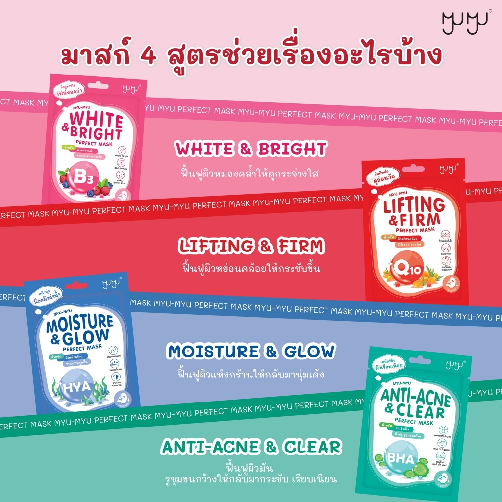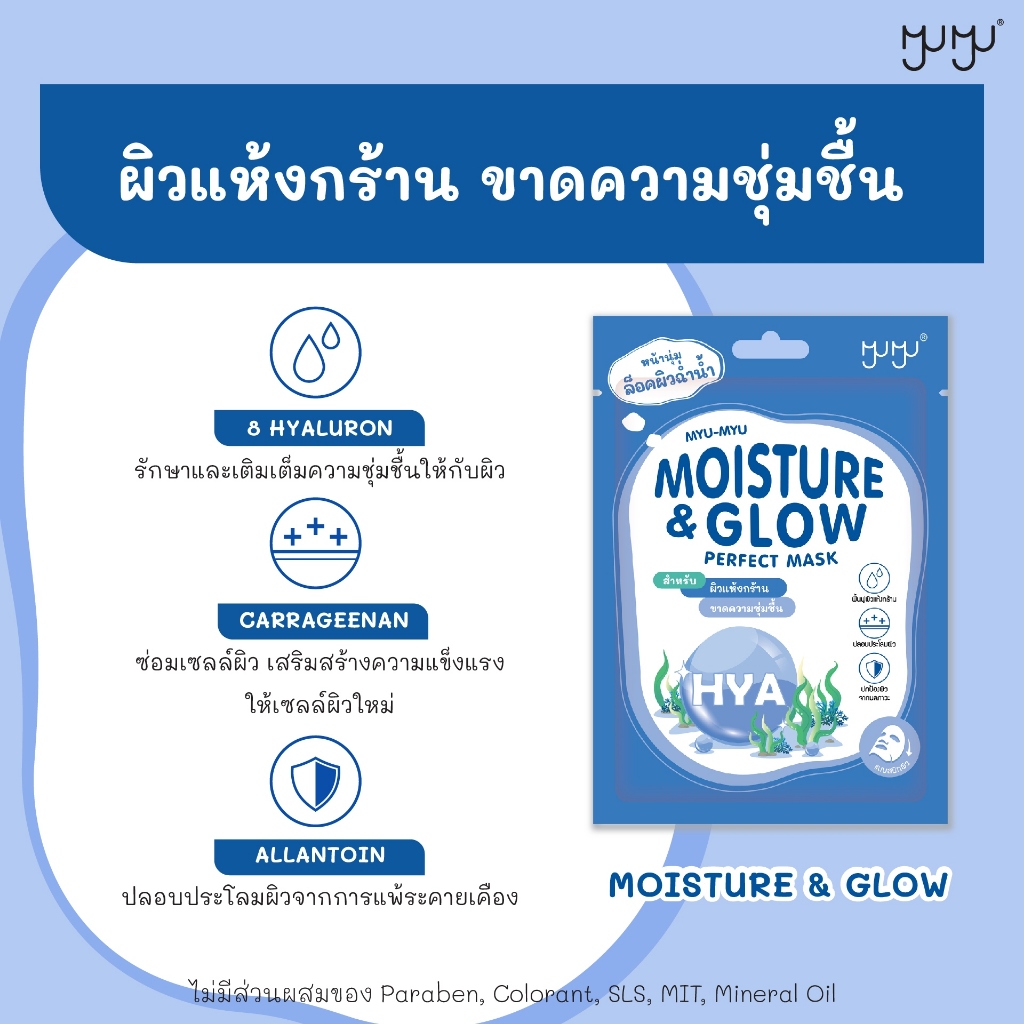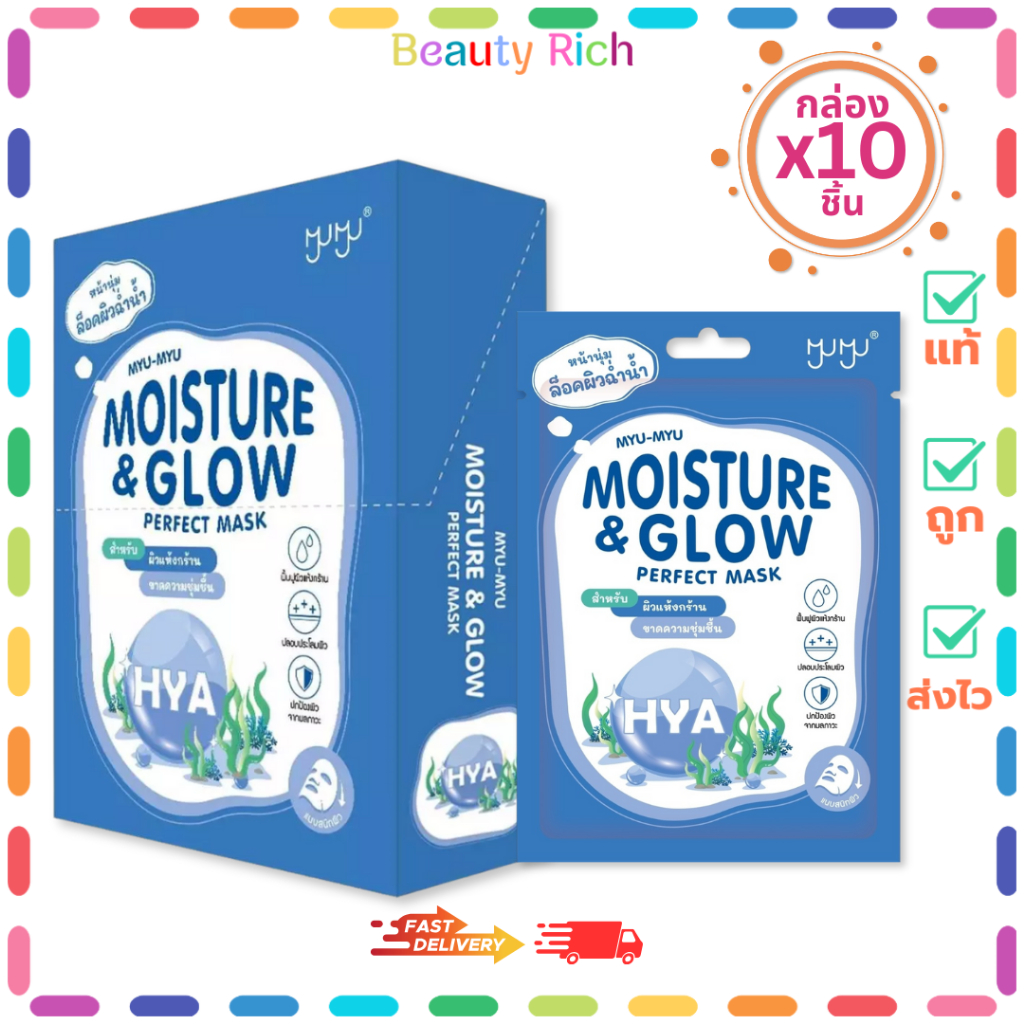 (กล่อง 10 ซอง) MYU-MYU PERFECT MASK MOISTURE & GLOW (สีน้ำเงิน) มิว-มิว เพอร์เฟค มาสก์หน้า (25 g.)