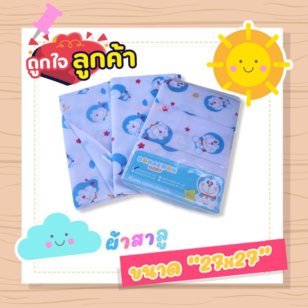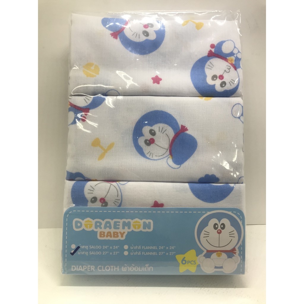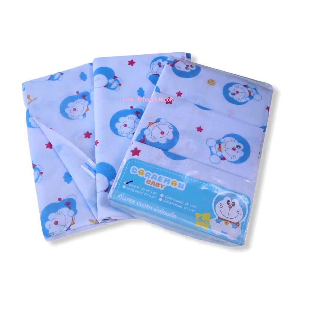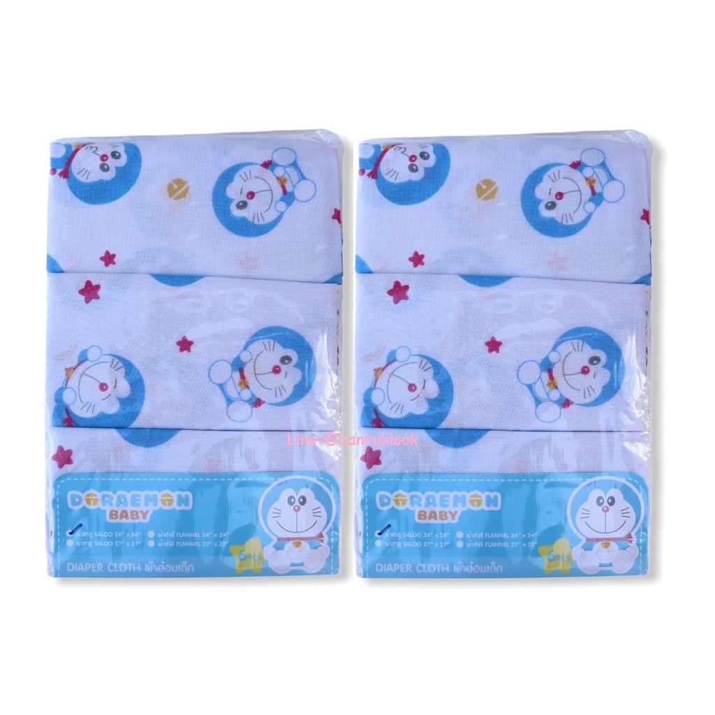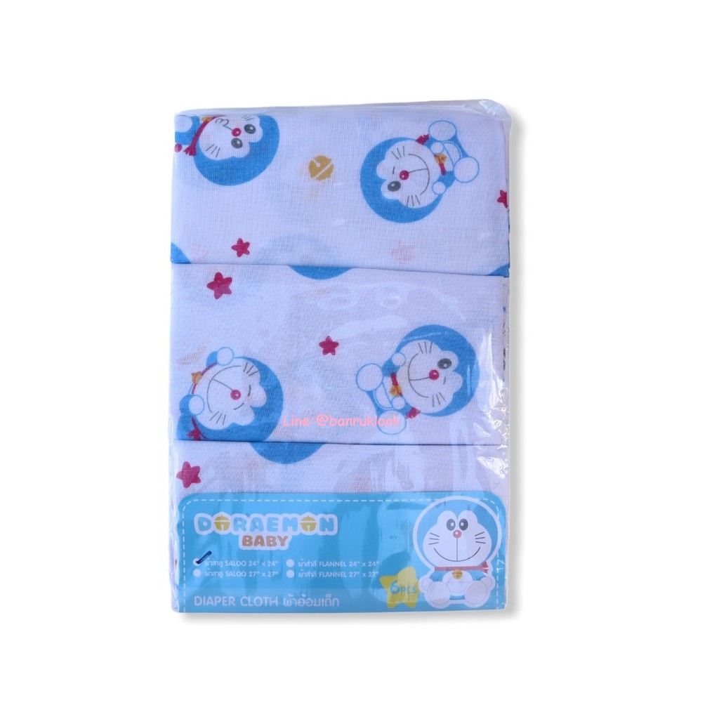 ผ้าอ้อมสาลู ผ้าอ้อมเด็กอ่อนแบบเย็บริมและแบบโพ้งริม ซักทำความสะอาดง่าย ลายโดเรมอน