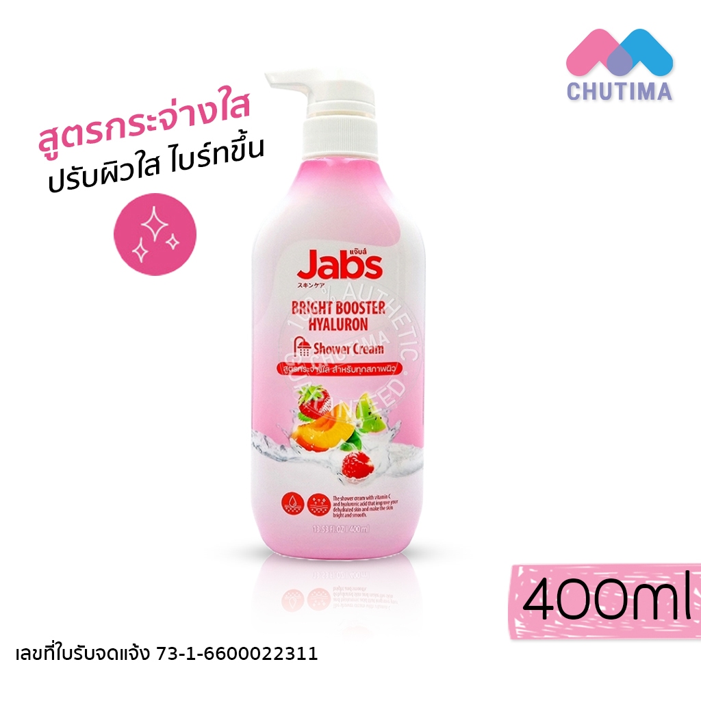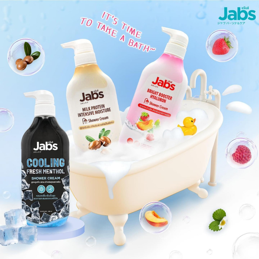 ครีมอาบน้ำ แจ๊บส์ ครบทุกสูตร Jabs Shower Cream Cooling Fresh Menthol / Bright Booster Hyaluron / Milk Protein 400 ml.