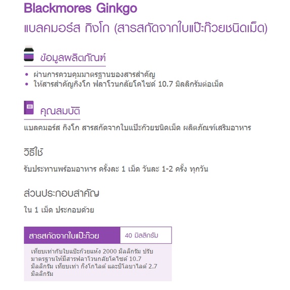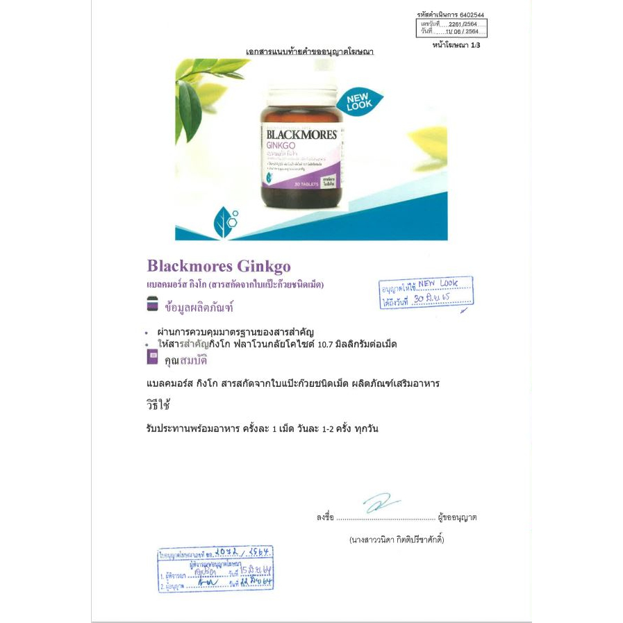 Blackmores Ginkgo 30'S แบลคมอร์ส กิงโก 30 เม็ด สารสกัดจากใบแป๊ะก๊วยชนิดเม็ด เหมาะสำหรับผู้ที่ต้องการบำรุงสมอง