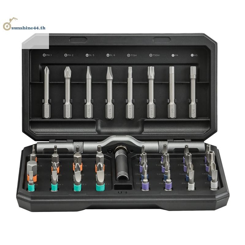 FOURSUN 42 In 1 ไขควงวงล้อแม่เหล็กชุดที่ถอดออกได้ T-Handle Magneticizer ไขควงแรงบิดมัลติฟังก์ชั่น DIY Too TH
