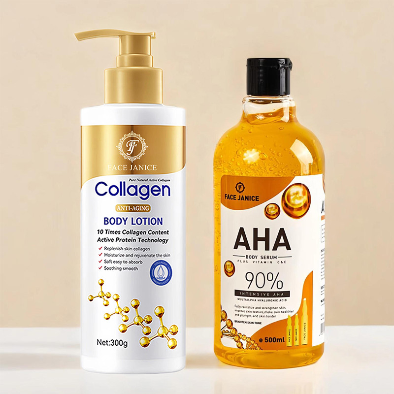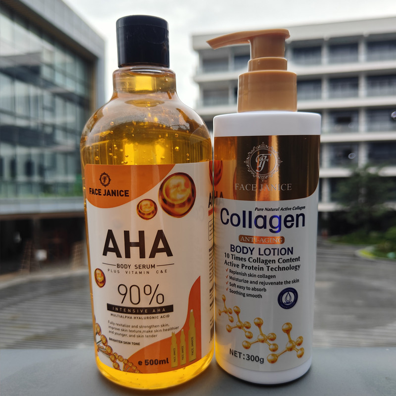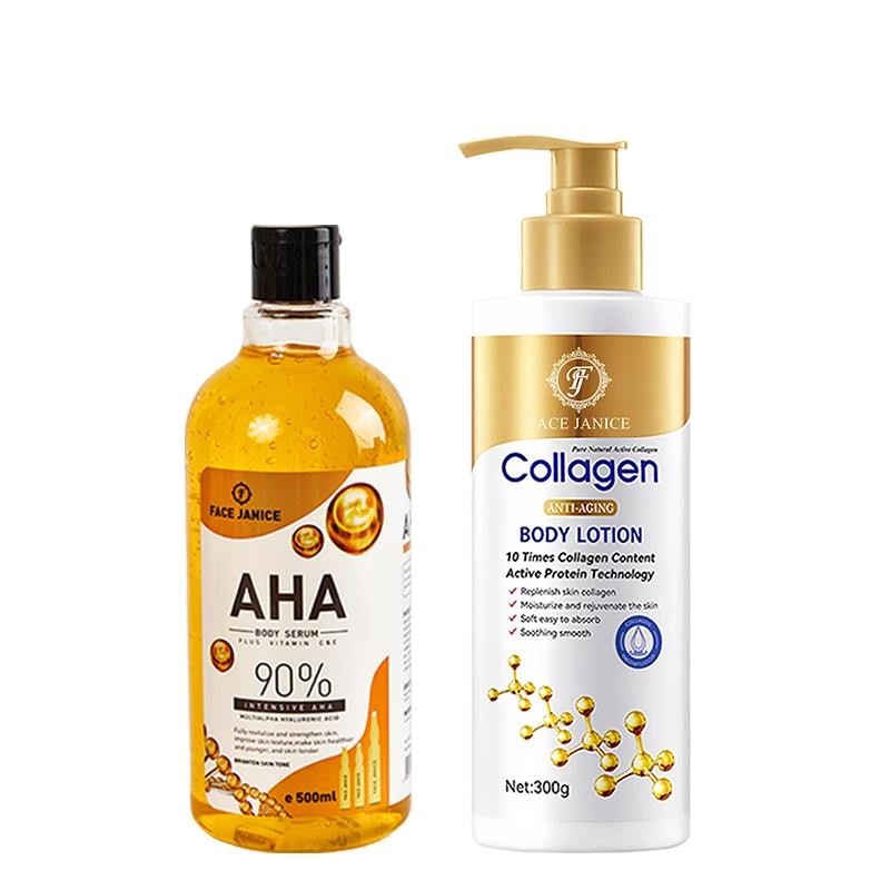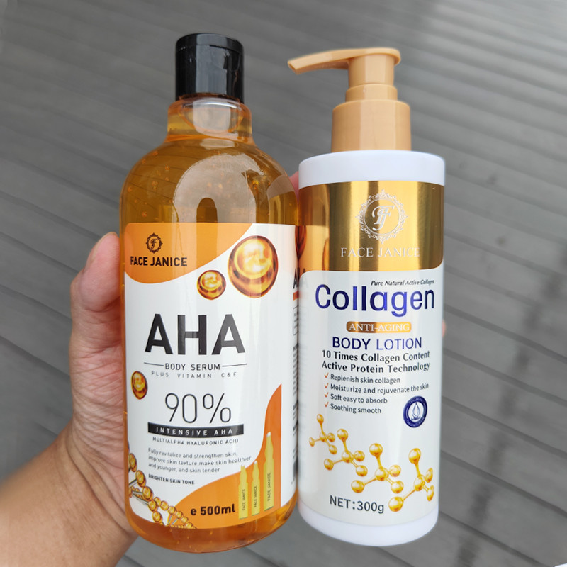 [1 แถม 1] ยูนิเซ็กซ์AHA เซรั่มทาตัว 500ml เซรั่มทาตัวขาว + FACE JANICE Collagen lotion โลชั่นผิวขาว 300ml ครีมทาผิวขาว