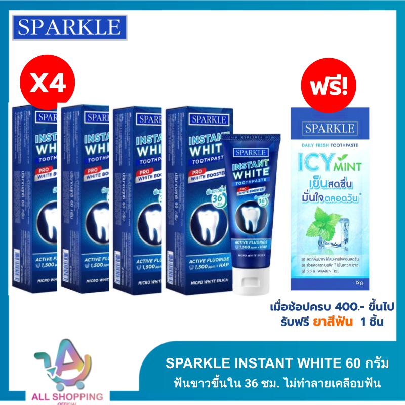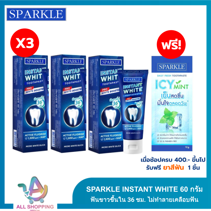 [2 หลอด] SPARKLE ยาสีฟัน INSTANT WHITE 60 กรัม (10SK00176) ฟันขาวขึ้น โดยไม่ทำลายเคลือบฟัน ไม่ทำให้เสียวฟัน