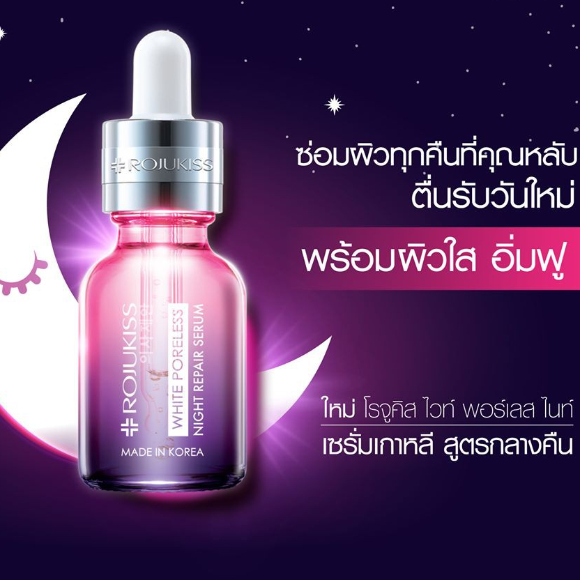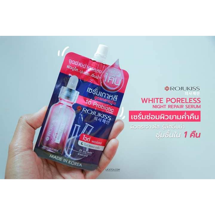 [ 1 ซอง ] โรจูคิส ไวท์ พอร์เลส ไนท์ รีแพร์ เซรั่ม Rojukiss White Poreless Night Repair Serum 6 มล.
