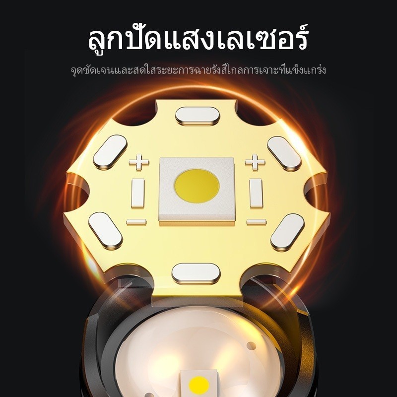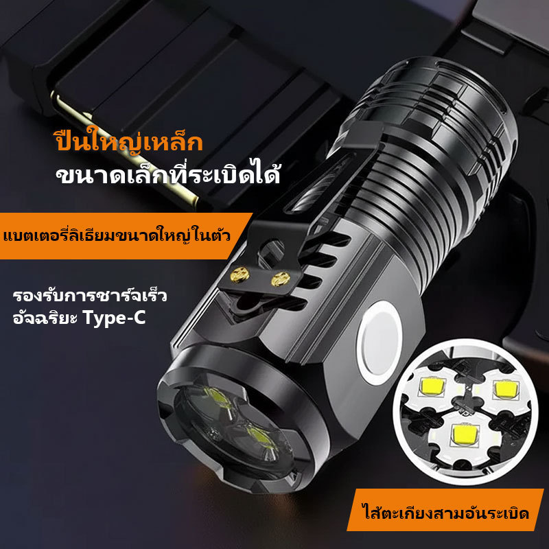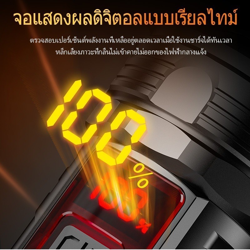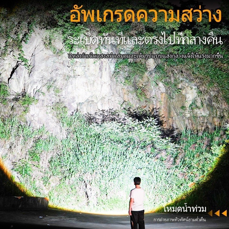 ไฟฉายพลังสูง กันน้ำ กันกระแทก ชาร์จเร็ว Type-C แสดงค่าพลังงาน สำหรับเดินป่า คาดหลังได้/มีพวงกุญแจ