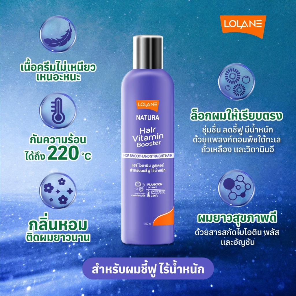Lolane โลแลน เนทูร่าแฮร์ ไวตามิน บูสเตอร์ เซรั่มบำรุงผม มี 2 ขนาด ช่วยให้ผม ชุ่มชื่น นุ่มสลวยลดชี้ฟู ไม่ต้องล้างออก