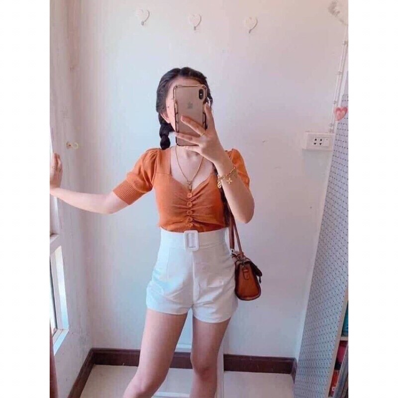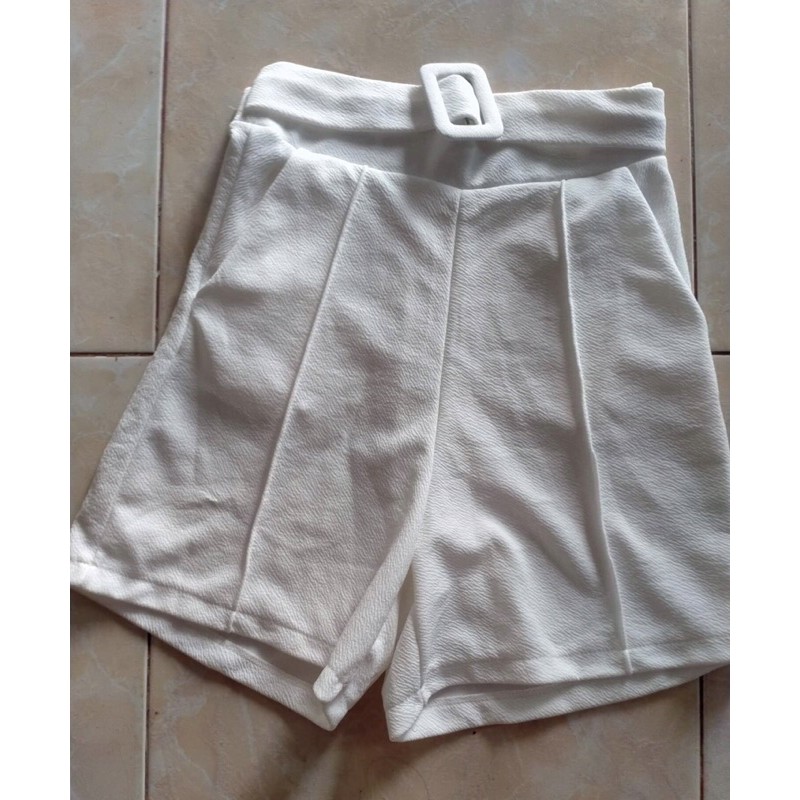กางเกงขาสั้นรุ่นเข็มขัด เอวสูง สีขาว มือ1