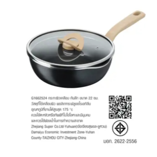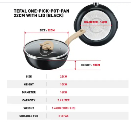 (กรุงเทพฯส่งด่วนภายใน 24 ชม.)Tefal กระทะก้นลึกพร้อมฝา ONE PICK POT PANรุ่น G1662524(สีดำ,ขนาด 22cm.)
