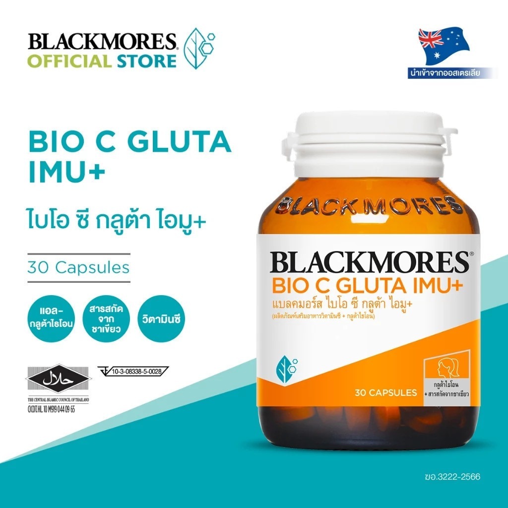 Exp 03/27 Blackmores BIO C GLUTA IMU+ 30 เม็ด.แบลคมอร์ส ไบโอ ซี กลูต้า ไอมู วิตามินซี + กลูต้าไธโอน คอลลาเจน สังก