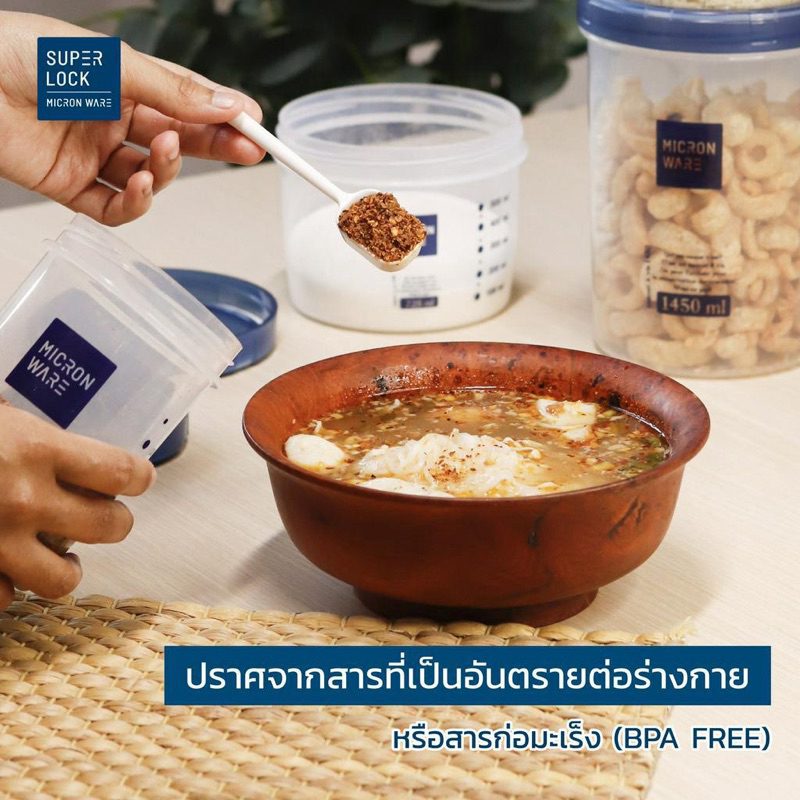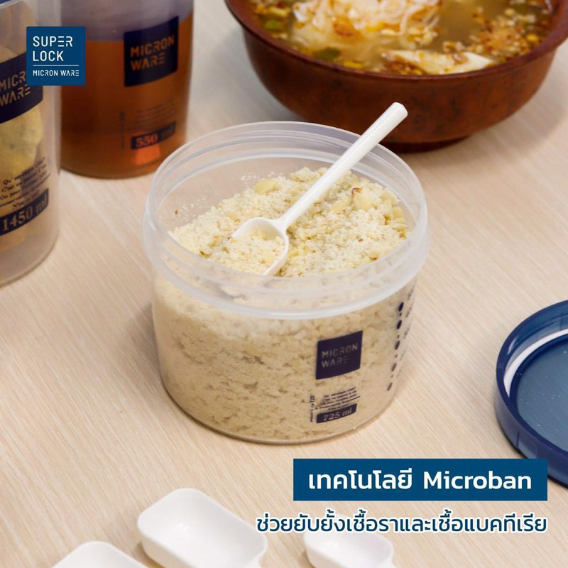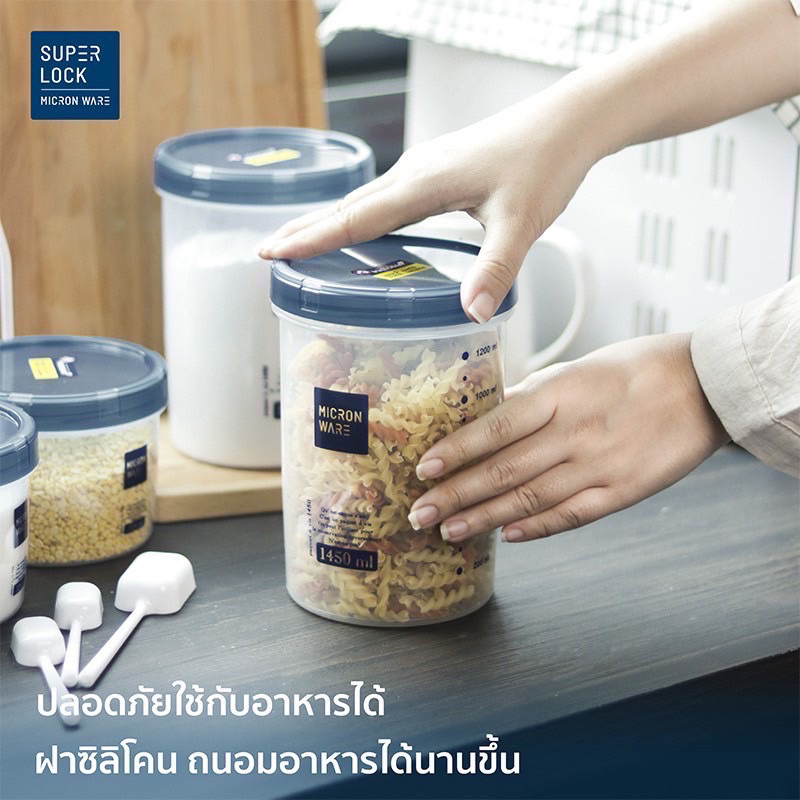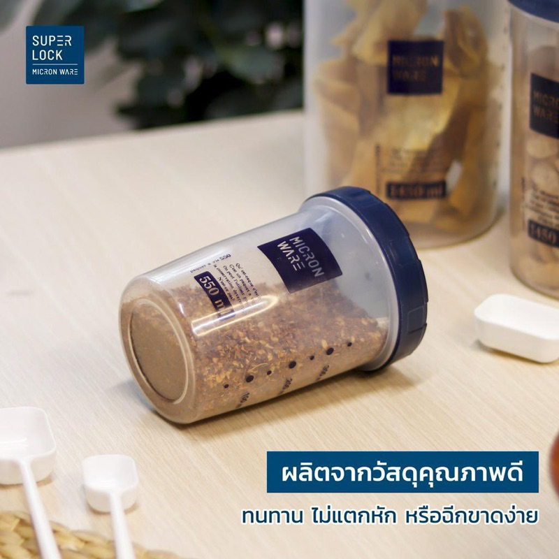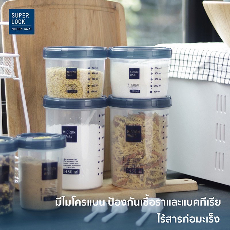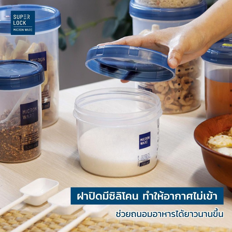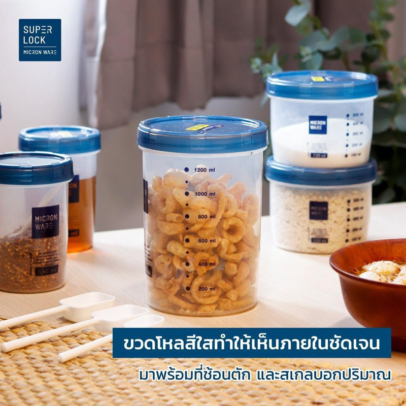 ส่งด่วน โหลกลมฝาสีฟ้า โหล โหลกลม โหลฝาเกลียว โหลอย่างดี กระปุกใส่อาหาร ขวดโหลฝาเกลียว โหลมีสเกล มีช้อนตัก Super Lock