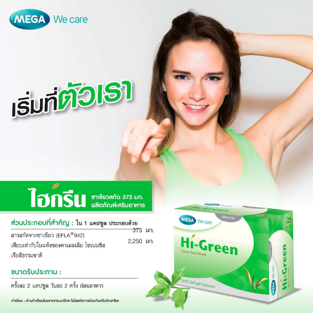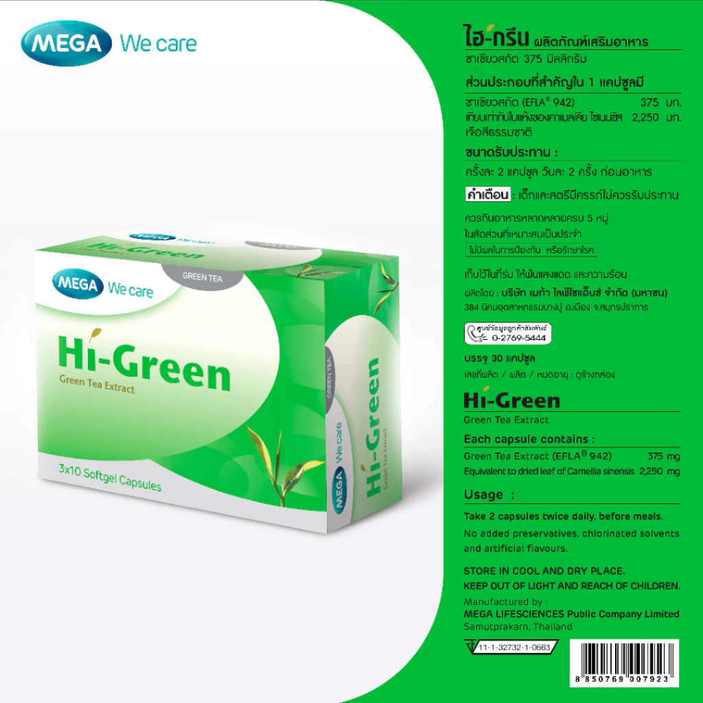 Mega We Care Hi Green 30 แคปซูล ชาเขียวสกัด เมก้า วีแคร์ ไฮ-กรีน [1948]