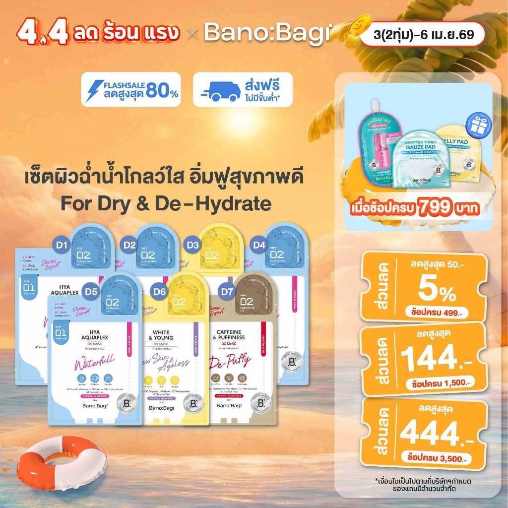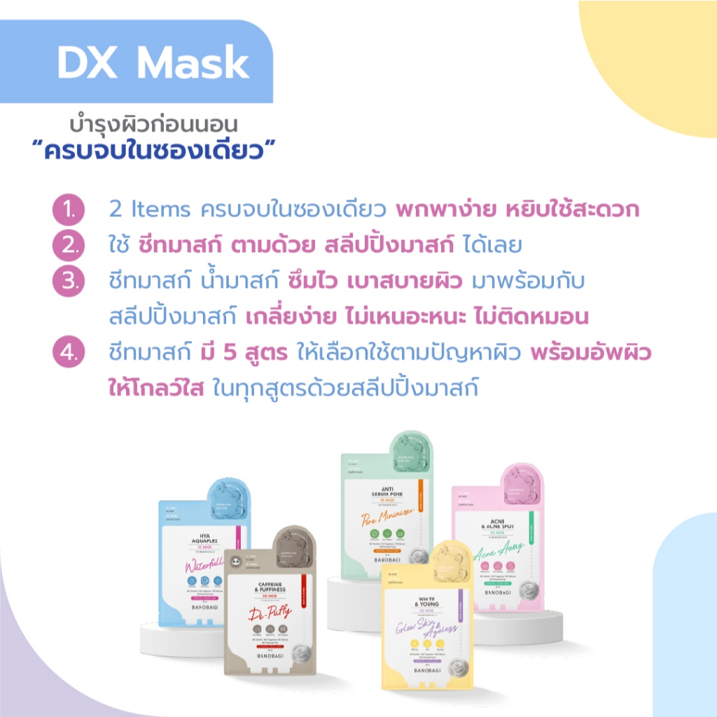 BANOBAGI DX Mask for Dry & De-Hydrate Set ดีเอ็กซ์ มาสก์ เซ็ตผิวฉ่ำน้ำโกลว์ใส อิ่มฟูสุขภาพดี(7 แผ่น) บาโนบากิ