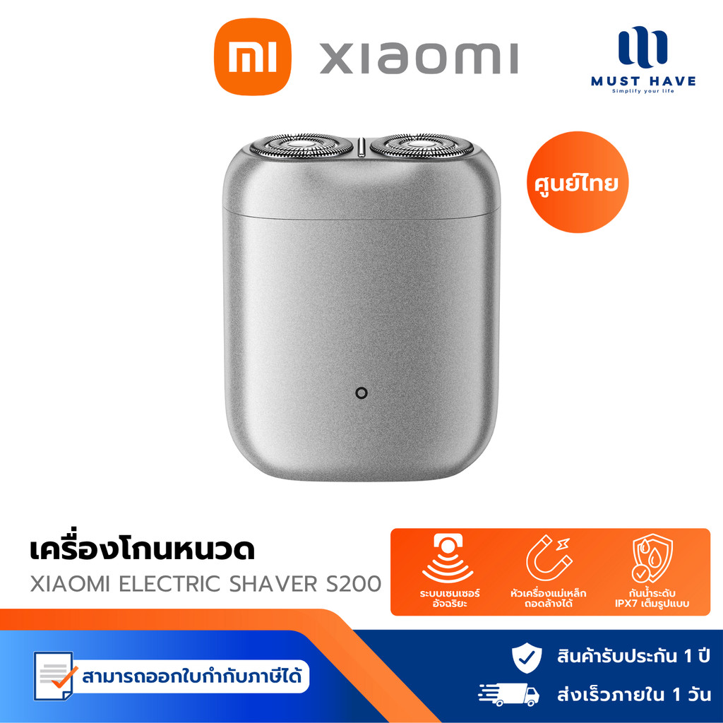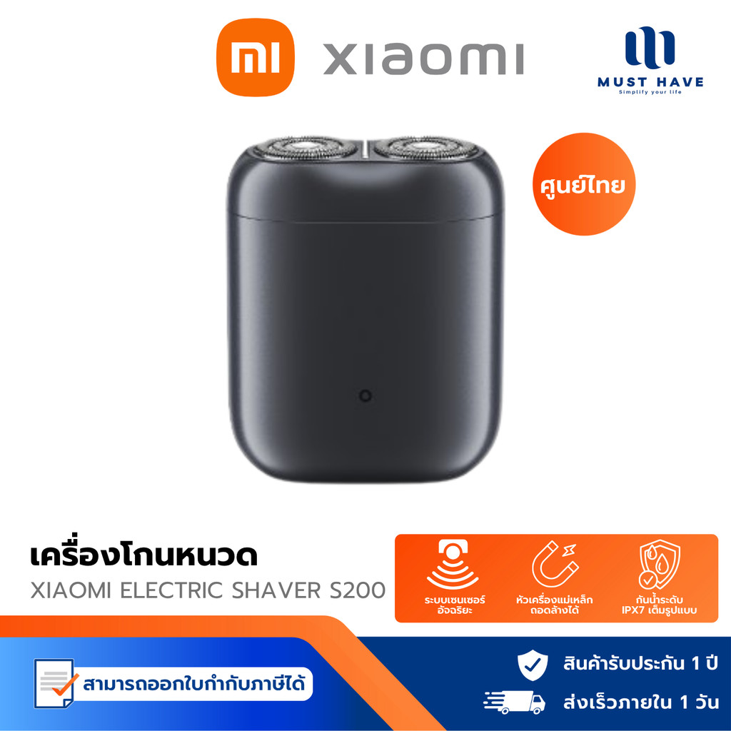 Xiaomi Electric Shaver S200 เครื่องโกนหนวดไฟฟ้า กันน้ำ IPX7 ขนาดพอดีมือ พกพาสะดวก รับประกัน 1 ปี